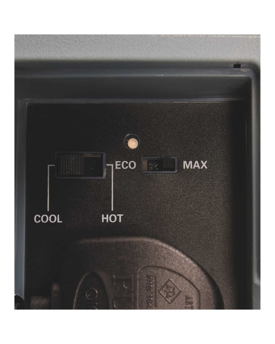 - For AC mode: on/off switch and stepless adjustable temperature regulation by rotating switch on the lid