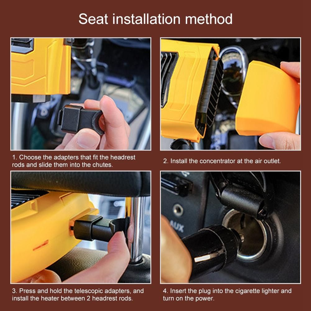 3. Dashboard & Car Seat Heater - For the Upgrade# version, you will get headrest rod mounting adapters(4pcs included of different sizes) with which you can mount this heater between headrest rods to heat and cool the backrest.