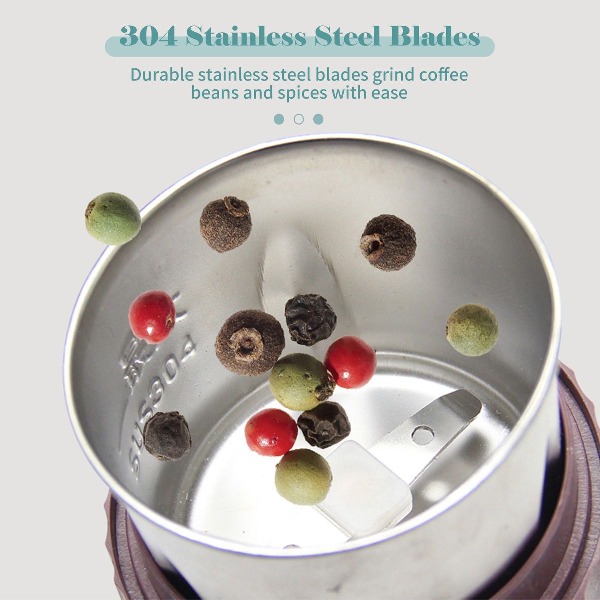 [Stainless Steel Blades]Durable stainless steel blades grind coffee beans and spices with ease.