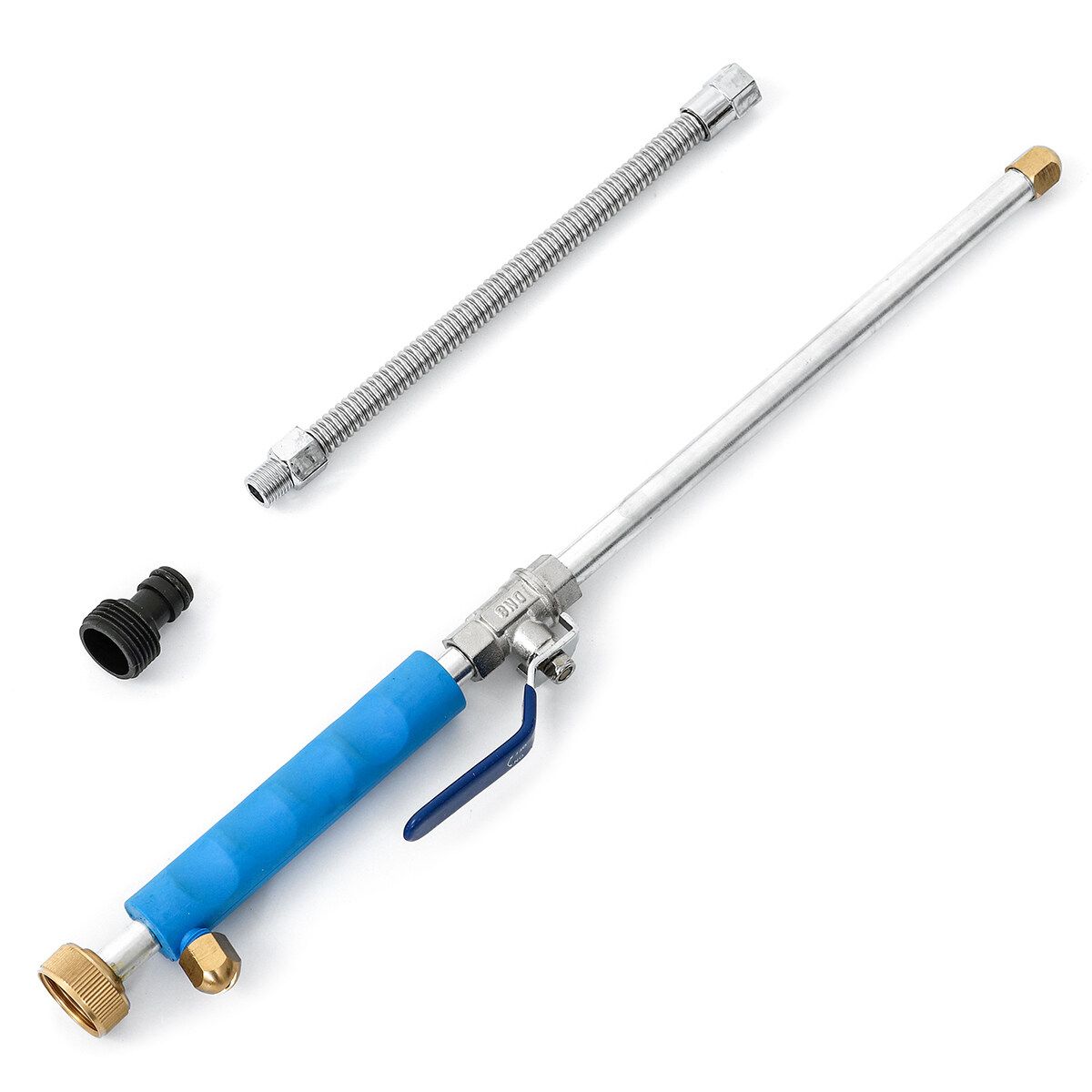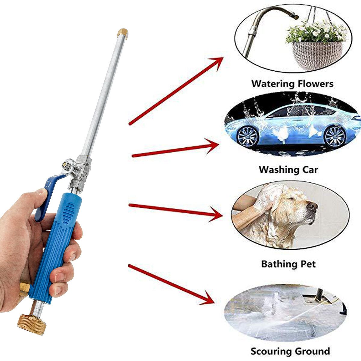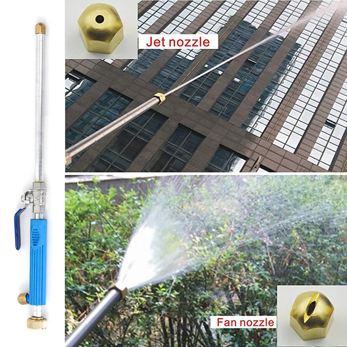 This washer water jet is used to wash car, clean dirt, mold on wood, aluminum, tires, glass and concrete. Garden hose nozzle used for cars and cleans patios, driveways, and second story windows from the ground. Water and 2 different nozzles allow you to go from a powerful jet stream to clean to a gentle spray to water delicate plants. Includes water jet hose attachment with 2 brass nozzles. How high up in the air could this garden hose nozzle? It's largely depend on the water ordinarily in your water system.The garden hose nozzle boosts that to a limited degree, so if you have low in your water pipes, attaching the Spray Nozzle may not be enough to get the water stream up to high altitude.