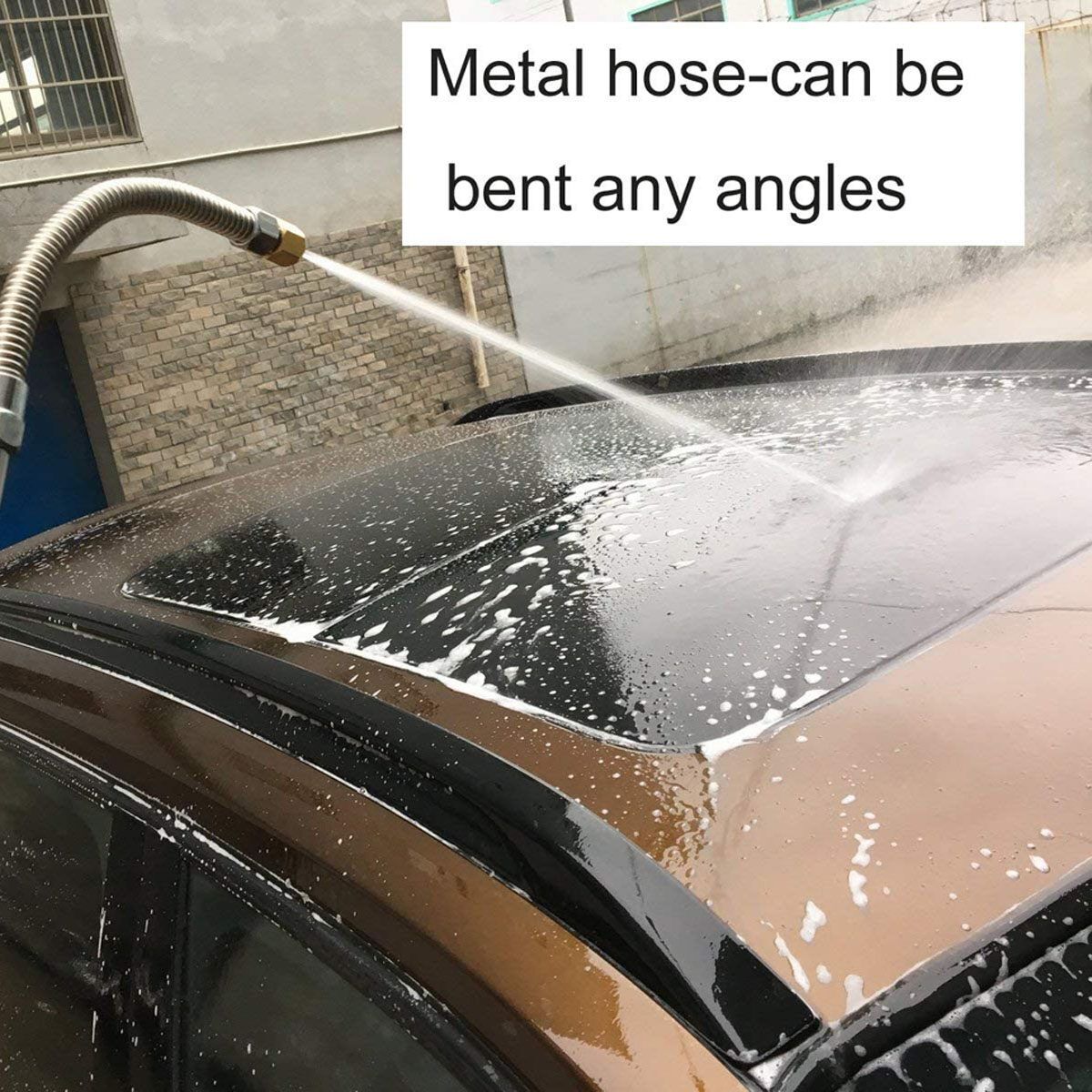 -With extendable wand, it is easy to clean the top of car wash, no need bend down your body, and Fits all 3/4'' standard garden hoses, and sizes with standard 1” metal hose connectors.