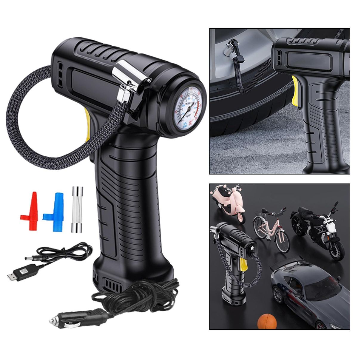 【Multifunctional】: Air Pump suitable for cars, SUV, Van, , motorcycle, truck, basketballs, swimming rings, etc.