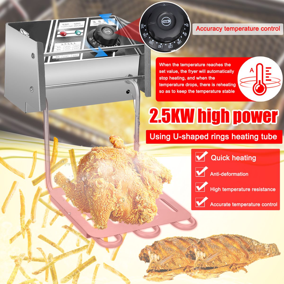Desktop electric deep fryer with simple operate panel, accuracy temperature control, easy to control, with over temperature power failure protecting.