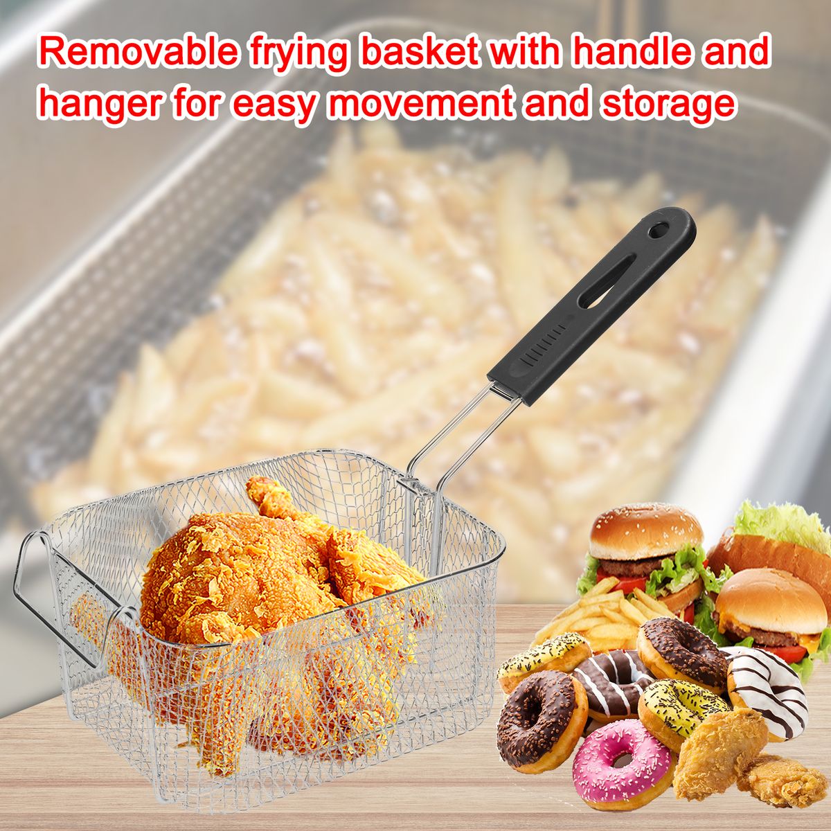 Removable frying basket with handle and hanger for easy movement and storage. It comes with a lid, can effectively keep warm or keep the oil cleaning.