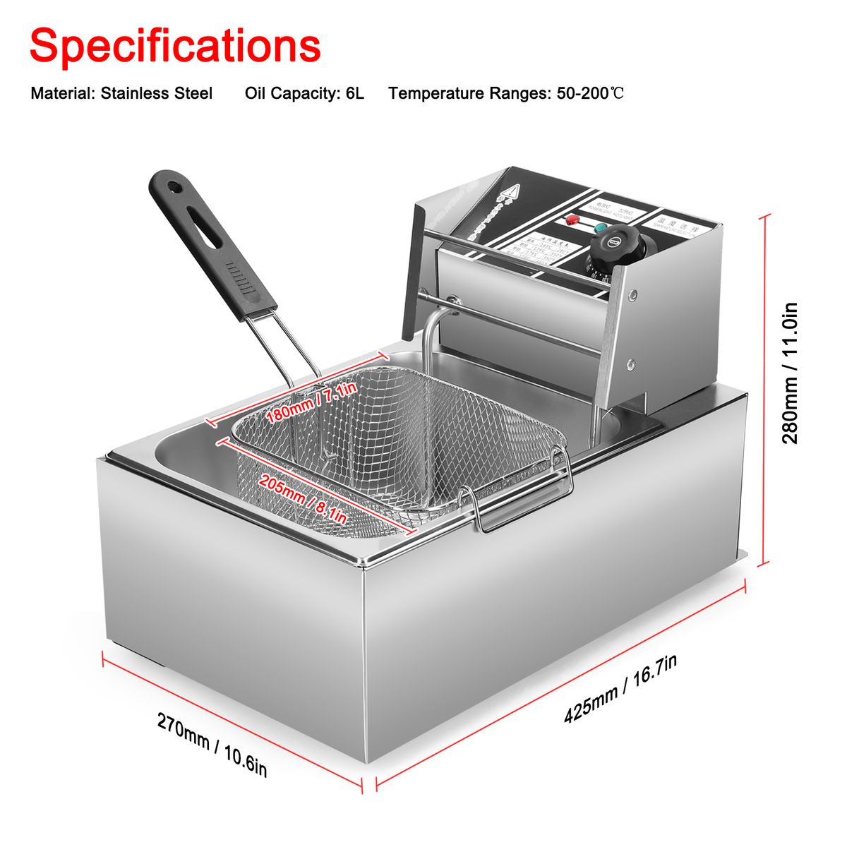 6L large capacity, convenient for you to make large portions of fried chicken, French fries, chips, donuts, spring rolls, doughnuts and other fried foods.