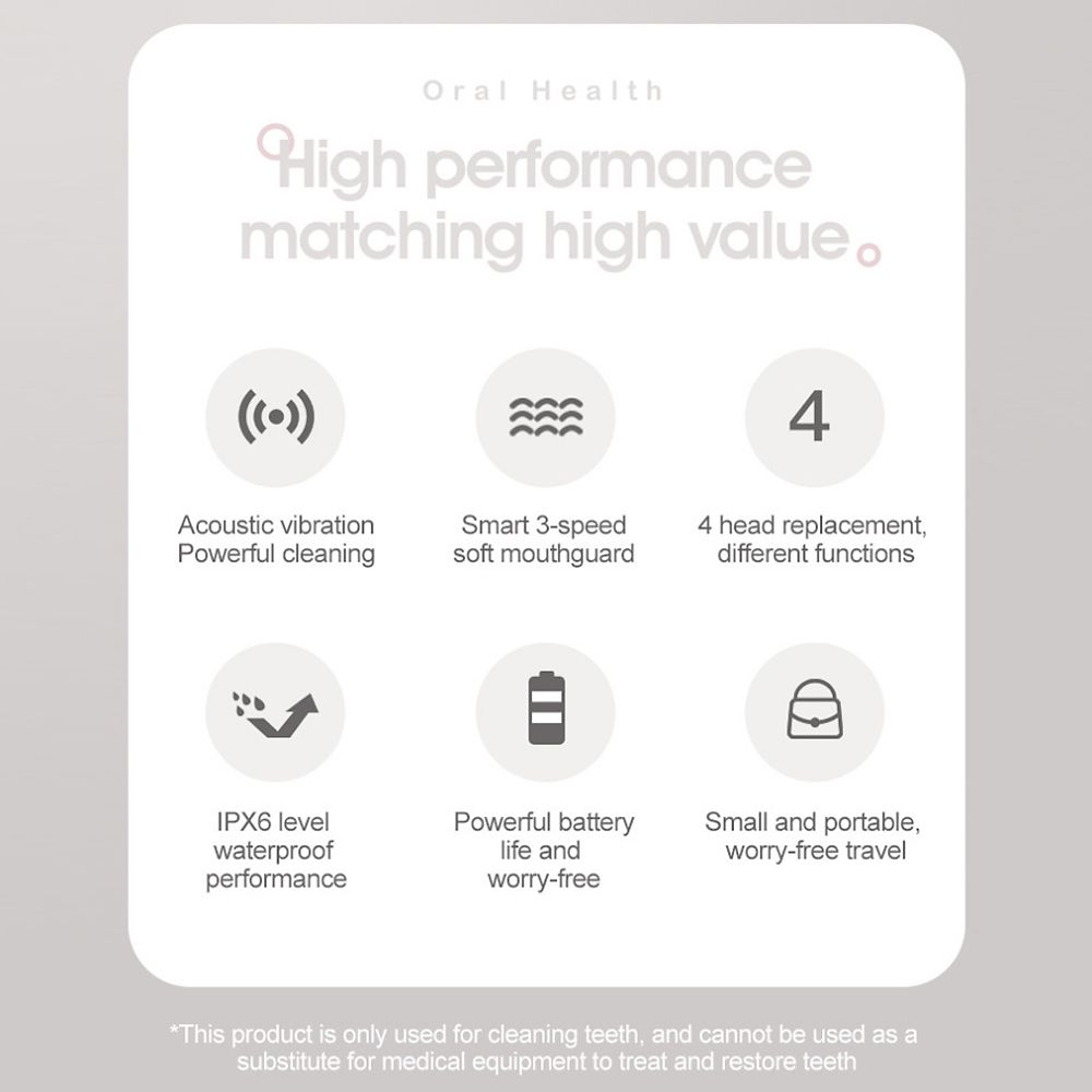 With 3 adjustable strength modes for the different sensitivity of gums, and with 4 replacement heads and dental mirror for effective cleaning.
