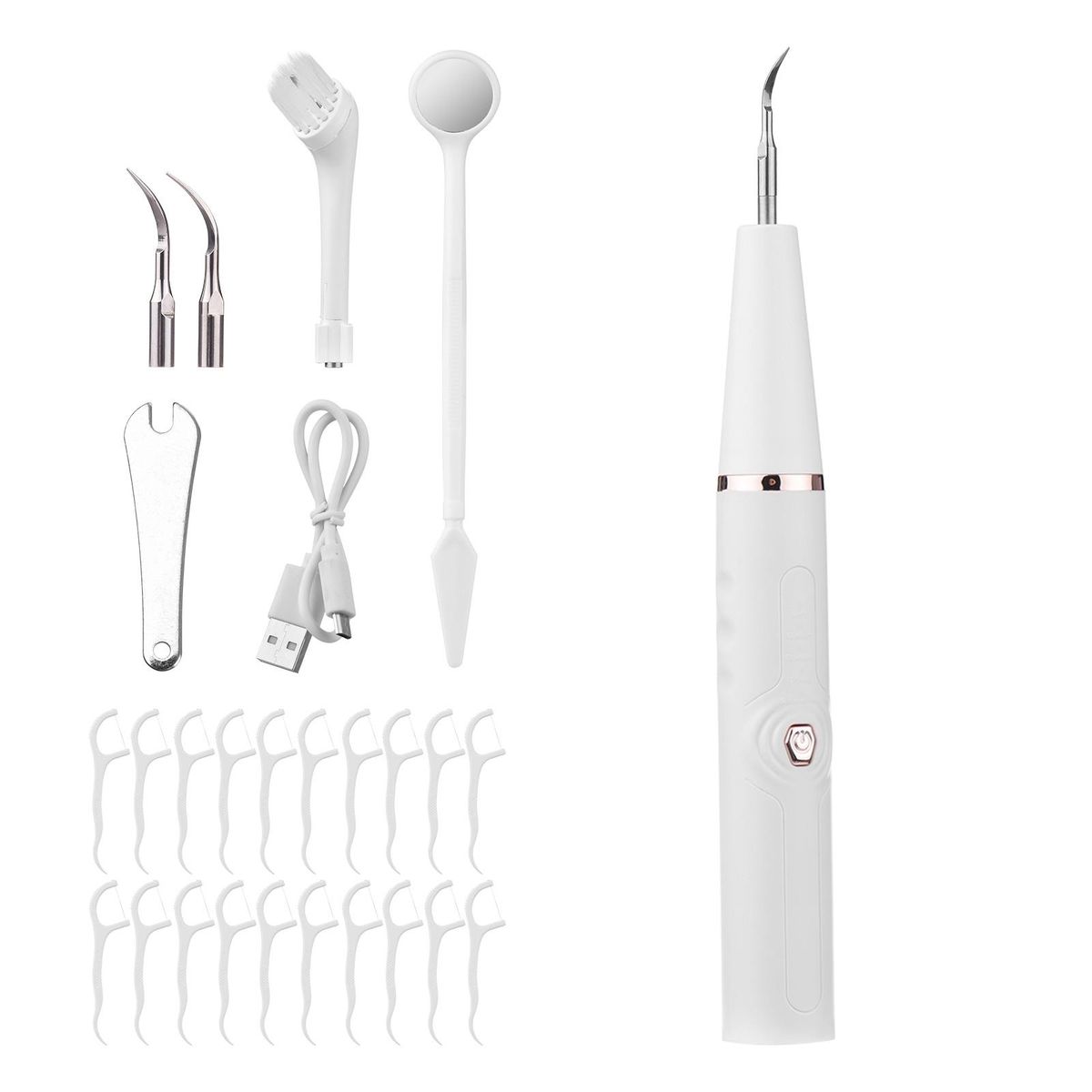 Buy Electric Dental Calculus Remover Tooth Cleaner Tartar Remover USB Charging Teeth Cleaning Kit with Tongue Scraper Oral Mirror White in Nigeria