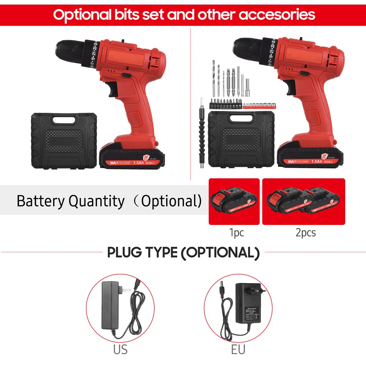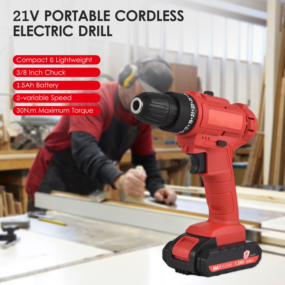 21V portable handheld electric drill with rechargeable lithium battery and fast charger is a practical tool in drilling. It's easy to use and portable to carry, and can be applicable to household reconstruction, DIY handcrafts, woodworking, garden work, auto repair and more!