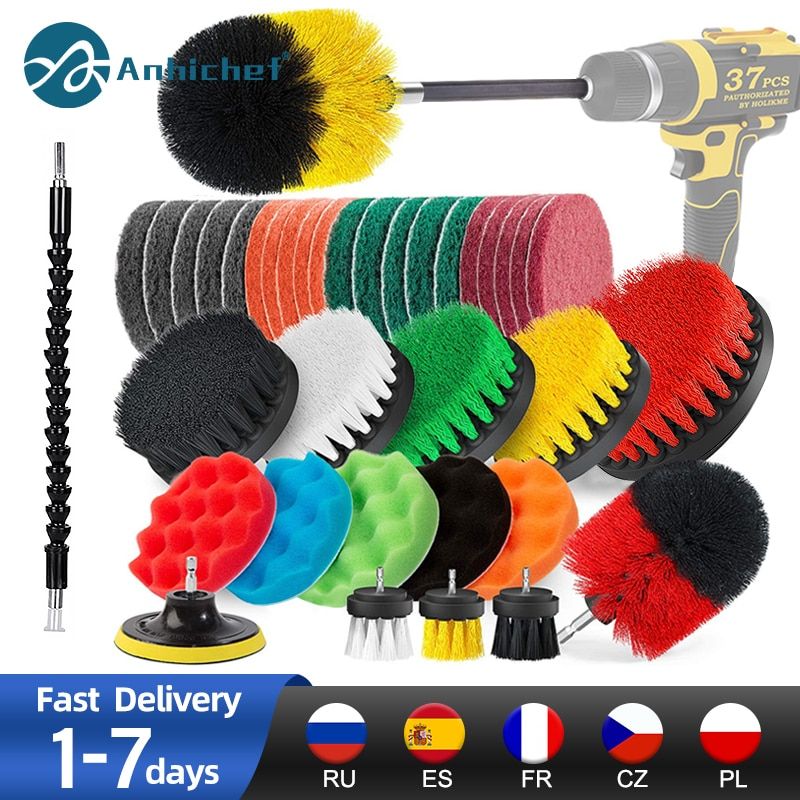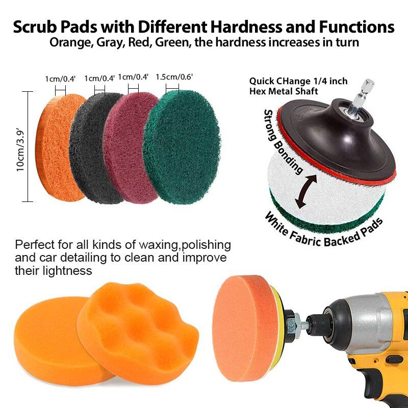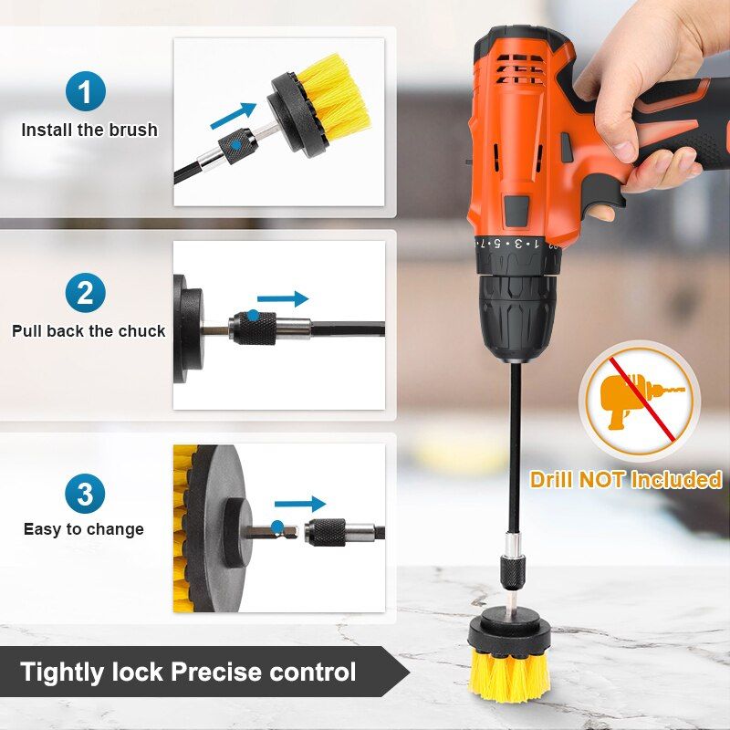 1X Electric Drill Brush Attachment Set Power Scrubber Brush Car Polisher Kitchen Bathroom Cleaning Kit Multi-Purpose Cleaning Tools