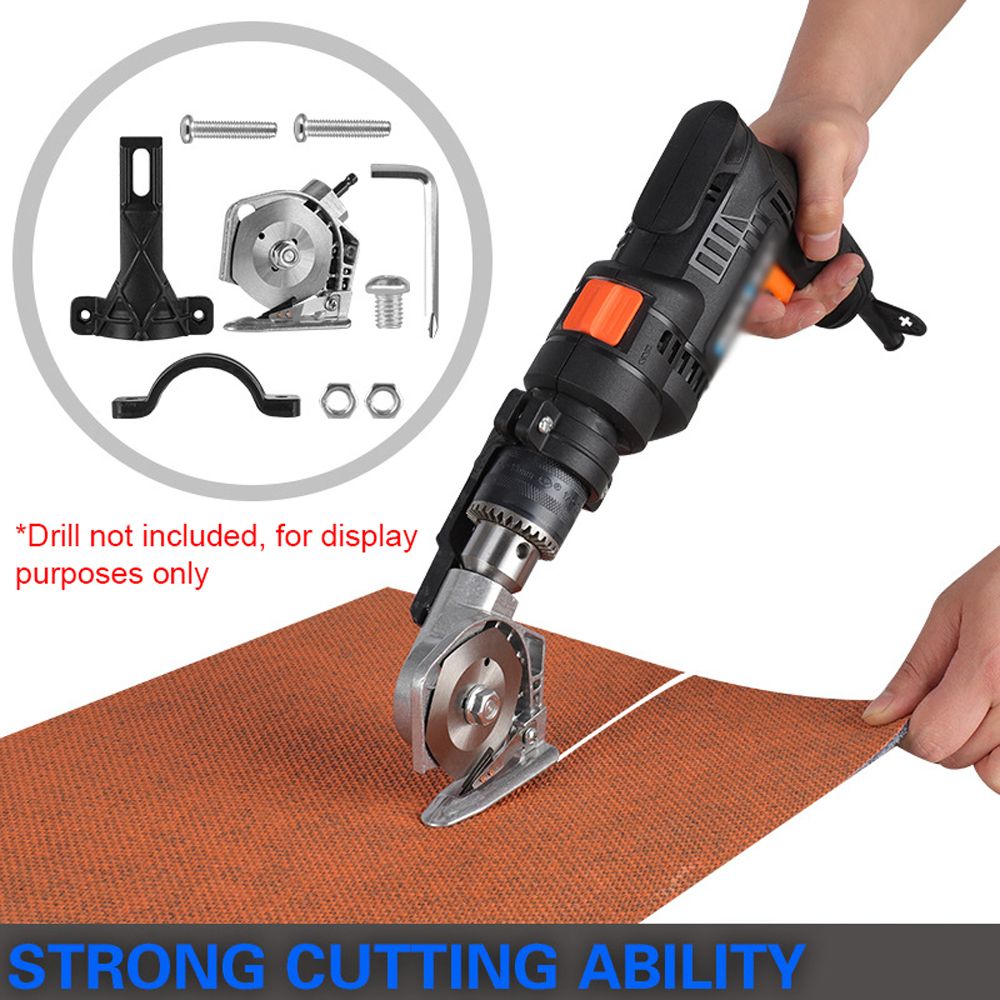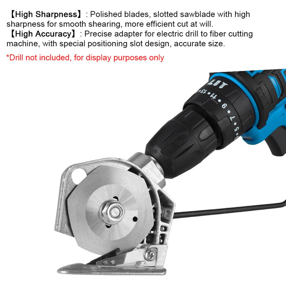 Quickly turn your electric drill into electric cutting machine with this innovative metal accessory that fits perfectly into your drill bit holder. The accessory fits easily and securely, ready for immediate use. With special positioning slot design, accurate size. Polished blades, slotted sawblade with high sharpness for smooth shearing, more efficient cut at will. Applicable to the common lithium drill and impact drill, more widely used. It is suitable for blanket cutting, thin fur cutting, kraft paper cutting, rope cutting, etc.
