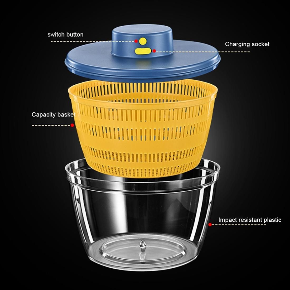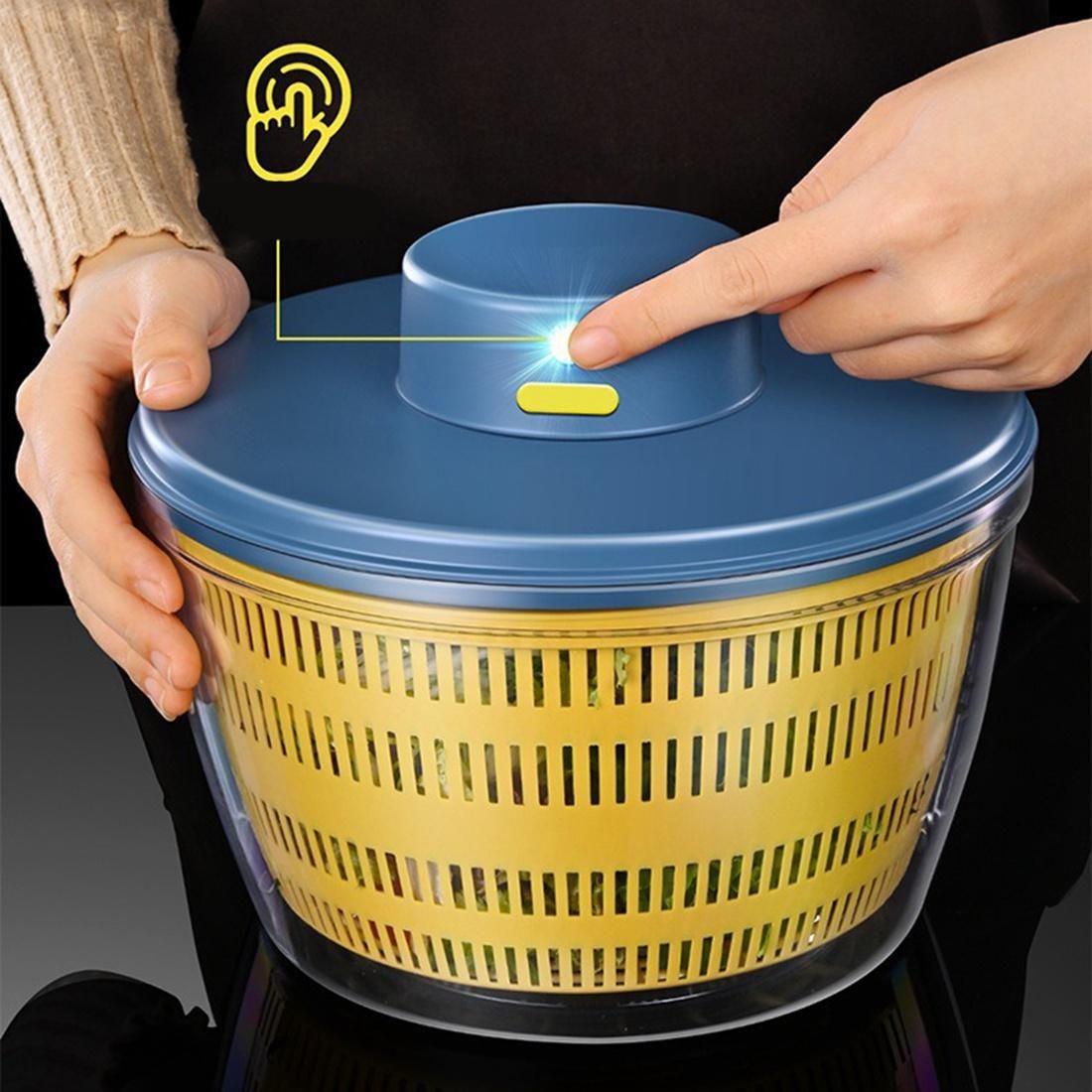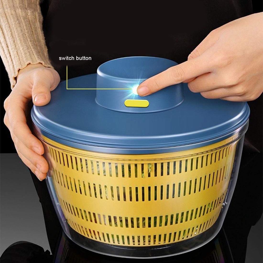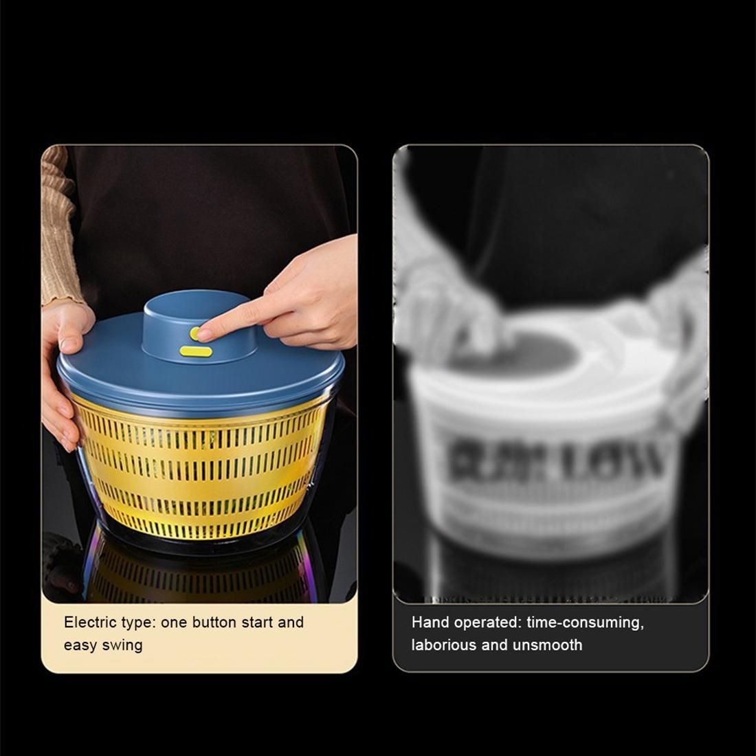 Electric salad turntable: This lettuce turntable uses electric and USB charging design, no need to manually press or pull. Just turn on the power button to start, and it will stop automatically after 10 seconds. There is also a USB charging port on the top cover, which can be used 100 times after being fully charged. Intimate and beautiful design, free your hands!