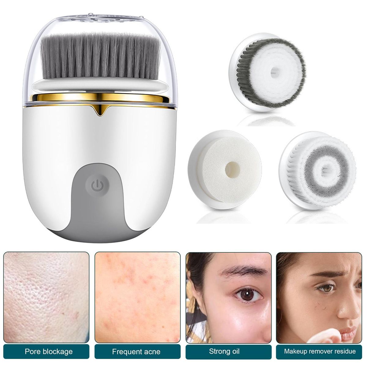 To cater to different skincare needs, this electric face cleanser comes with 3 brush heads. the soft fiber brush is perfect for removing oily dirt and face cuticles. the daily cleaning brush head ensures a thorough cleanse for your everyday routine. lastly, the makeup removal brush head effectively removes stubborn makeup without irritating your skin.