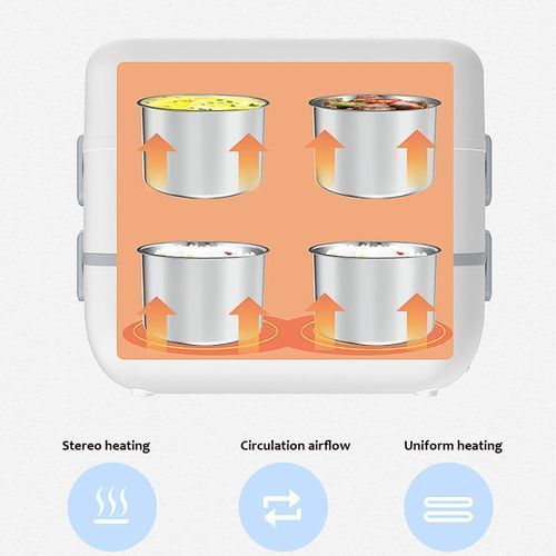 - The design of stereo circulation heating in strong power keeps the food warm and fresh.