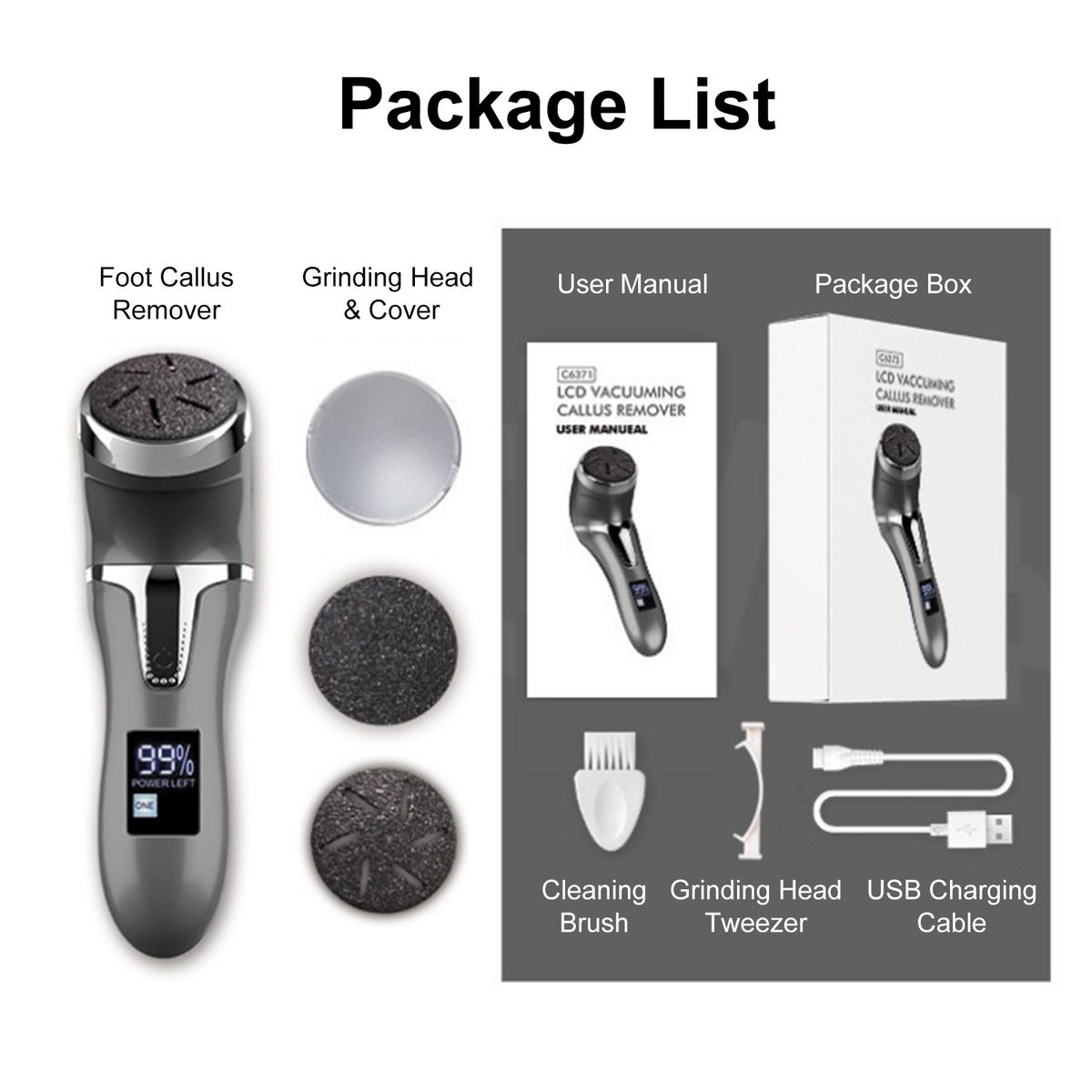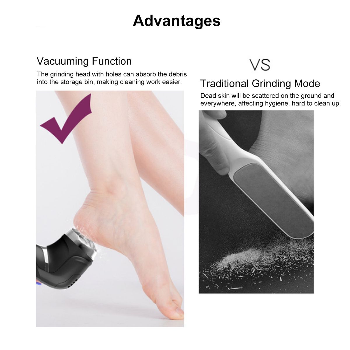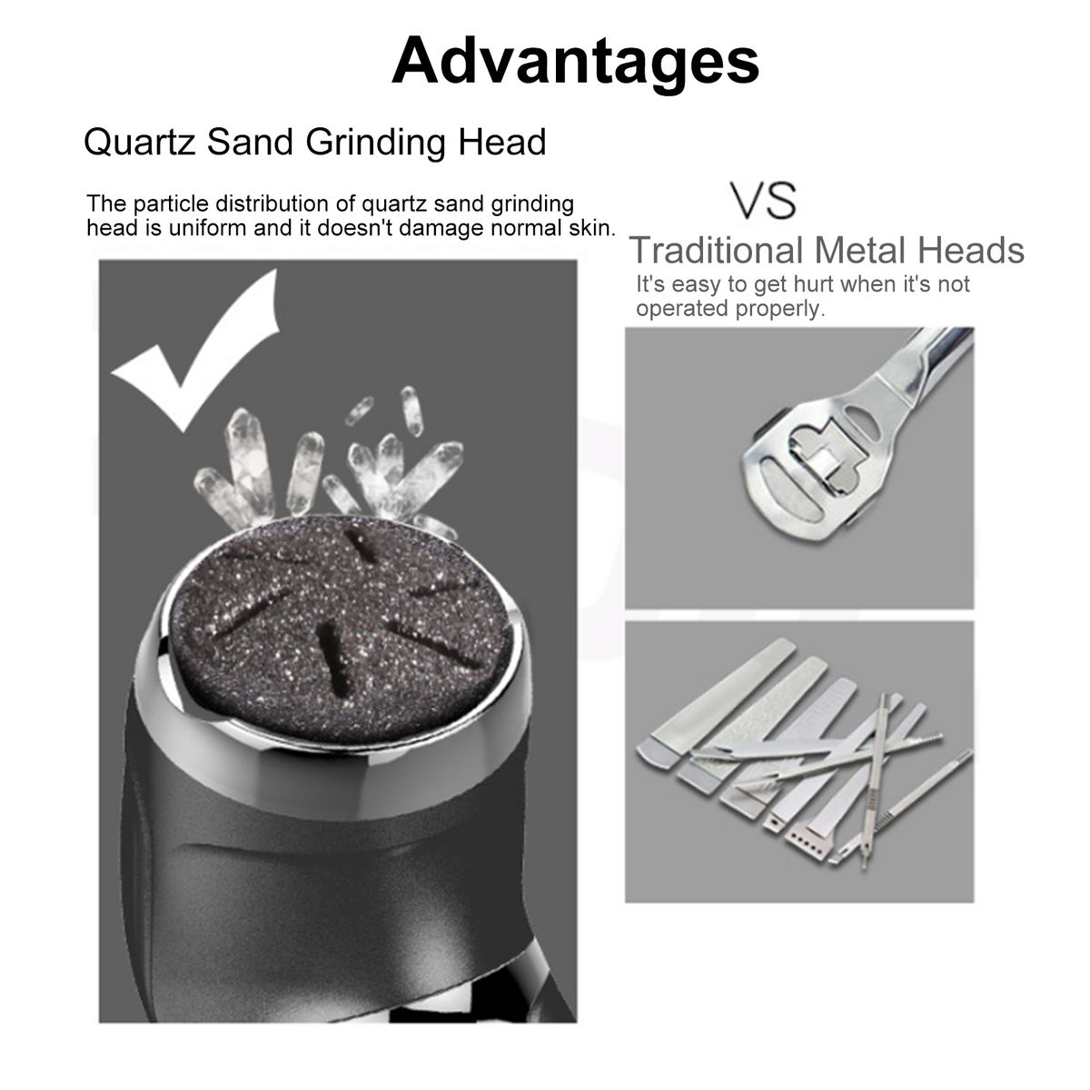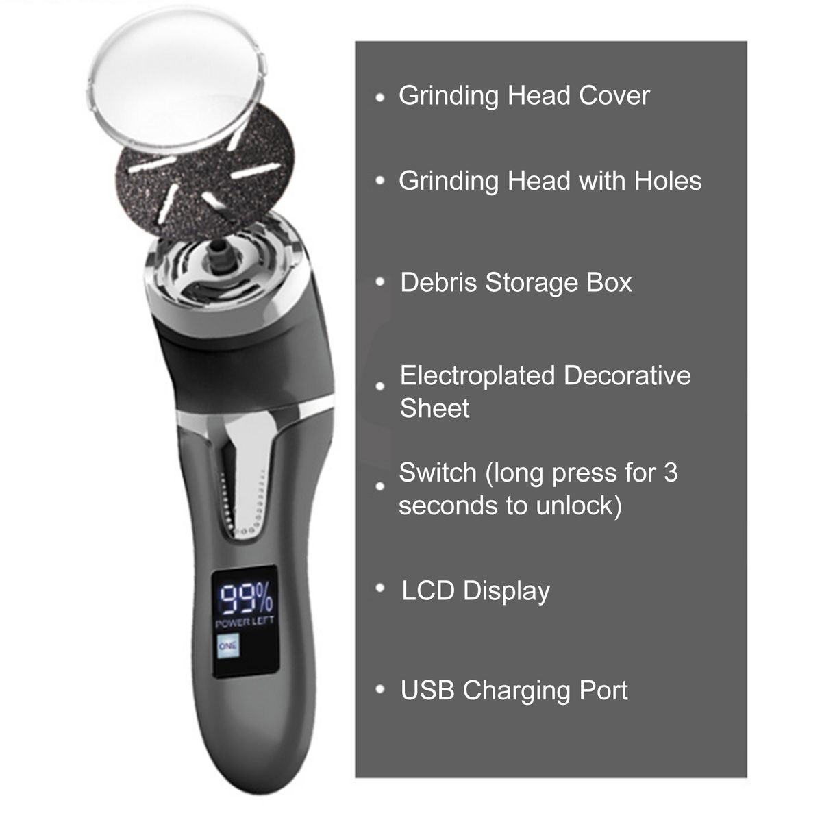 Comes with 3 different grinding heads. Rough grinding head removes stubborn dead skin, medium head for rough dead skin, and fine head for daily foot care.