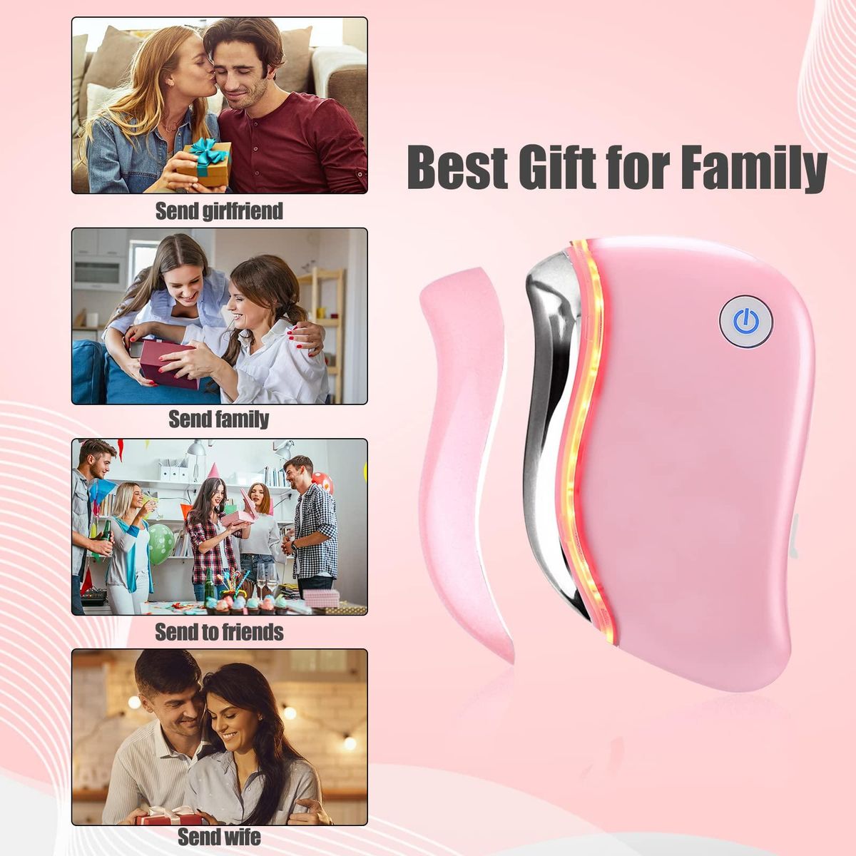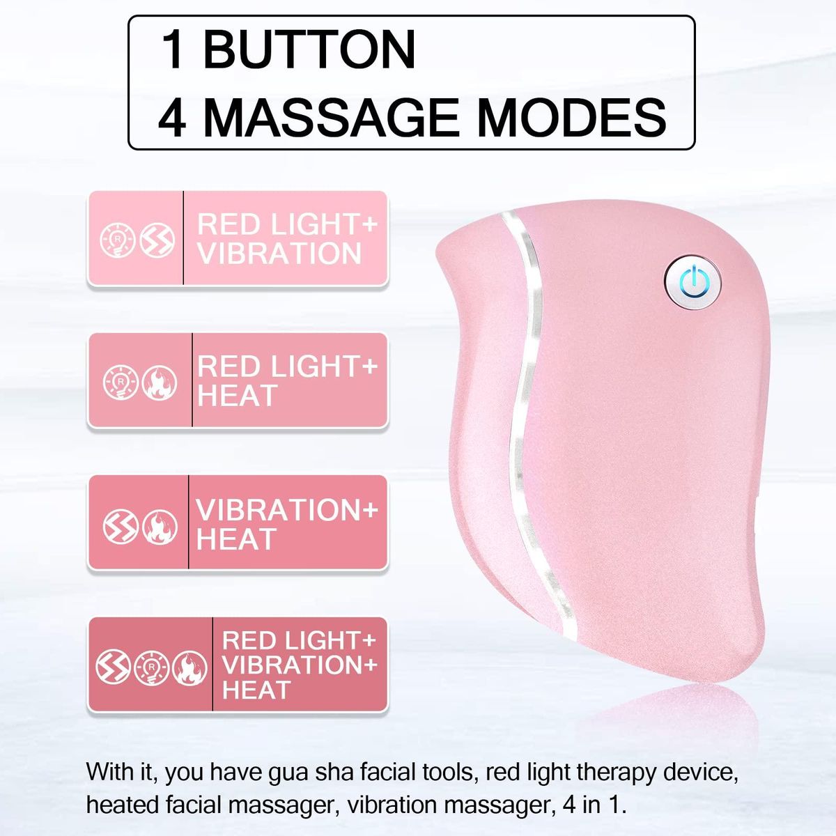 【Multifunctional】With it, you have gua sha tools for face, red light therapy device, heated facial massager, vibration massager, 4 in 1, which can be used on your face, eyes, chin, back, neck, etc.