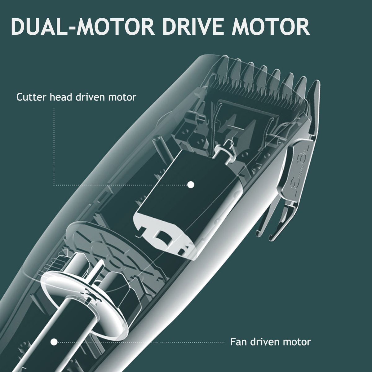 Dual motor drive, up to 4800rpm motor-driven cutter head, strong power without hair stucking, turbo motor-driven fan, more suction without broken hair.