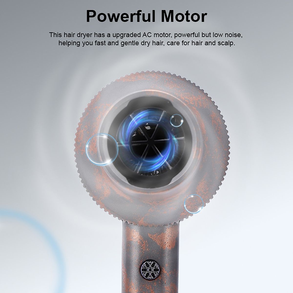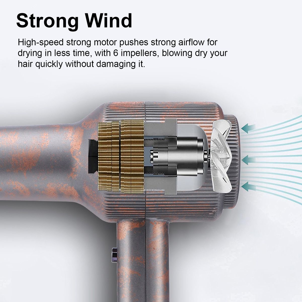 High-speed strong motor pushes strong airflow for drying in less time, with 6 impellers, blowing dry your hair quickly without damaging it.