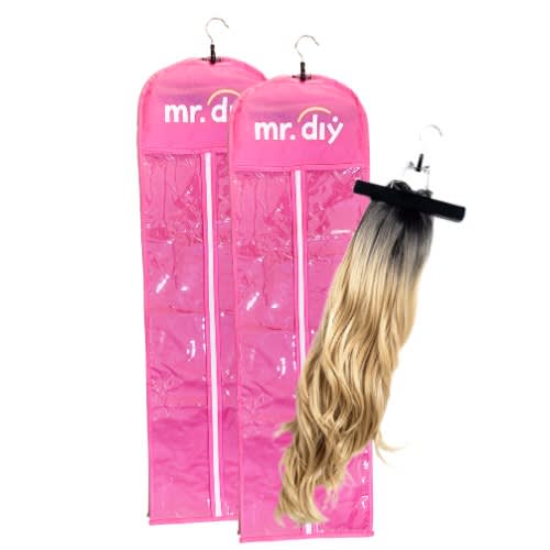 Professional rotatable hair extension hangers and protective bags.Organize and store hair extensions/primary hair braids, etc.Isolation of the wig from dust and moisture to optimize it.The zip closure is designed for easy insertion and removal of the extension.It is an ideal tool for household goods organization, not only for hair extension, but also for storing clothes, scarves, etc.