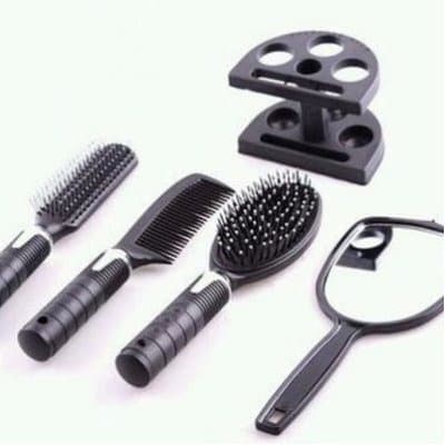 This 5 piece stylish hair brush is a must have for every stylish chic. It's light weight and easy to carry when travelling. It comes with 2 brushes, 1 mirror, 1 comb and a stand.