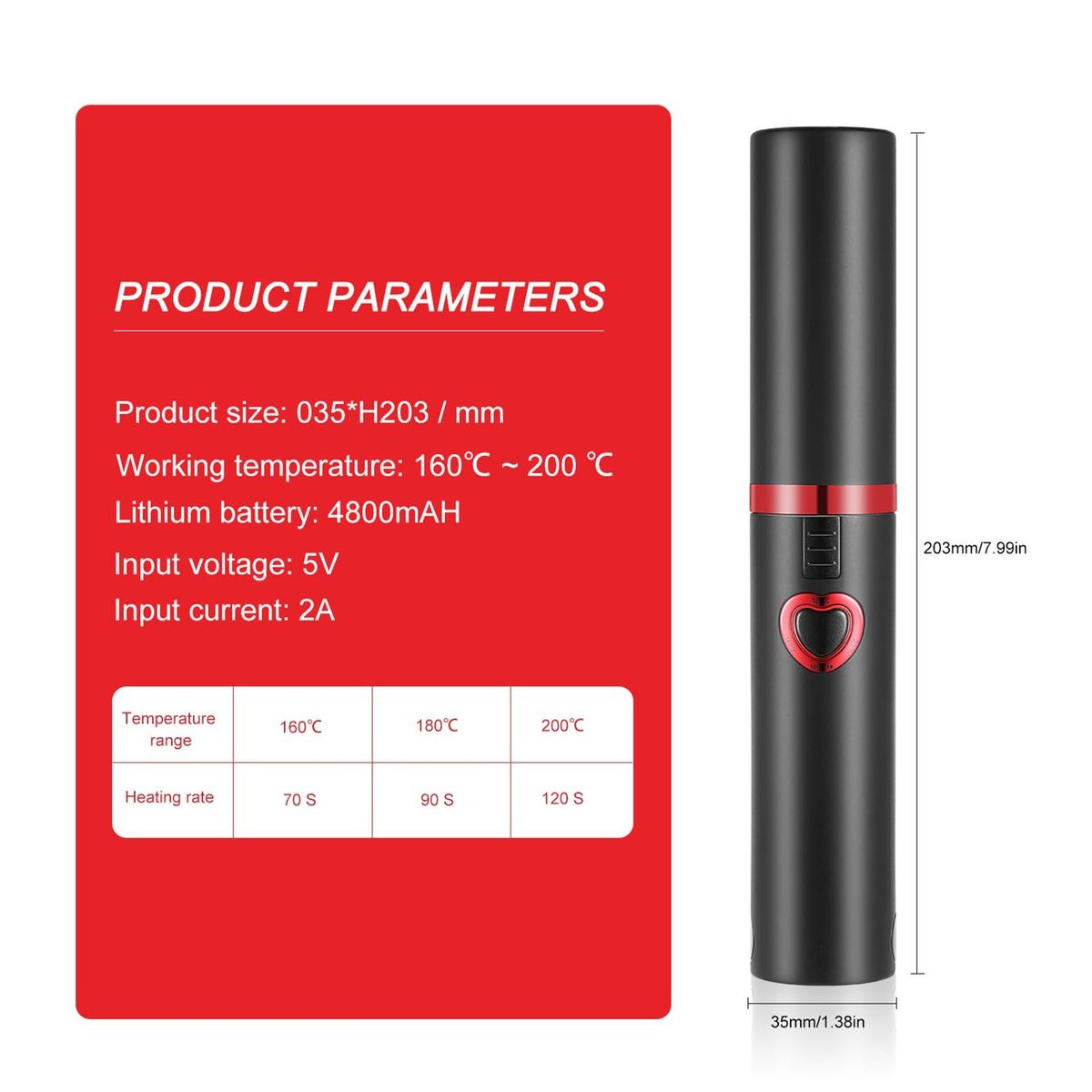 Adjustable temperature, three different temperature gears, the first gear is 160℃ (suitable for girls with thinner hair), the second gear is 180℃ (for normal hair), and the third gear is 200℃ (suitable for thicker hair).