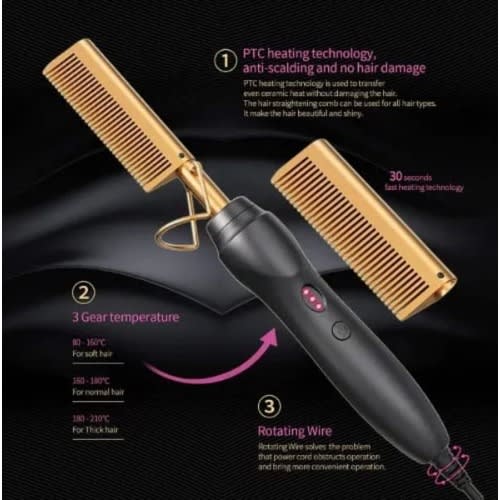 360 & deg; Rotating Cable Innovative Design: 360 & deg; rotating cable allows the smoothing comb to tangle during use. The cable is approximately 1.5 m long. This means you can straighten your hair at any angle, making it comfortable to use with one hand and reduces pressure on the wrist, making it ideal for professional salon use.