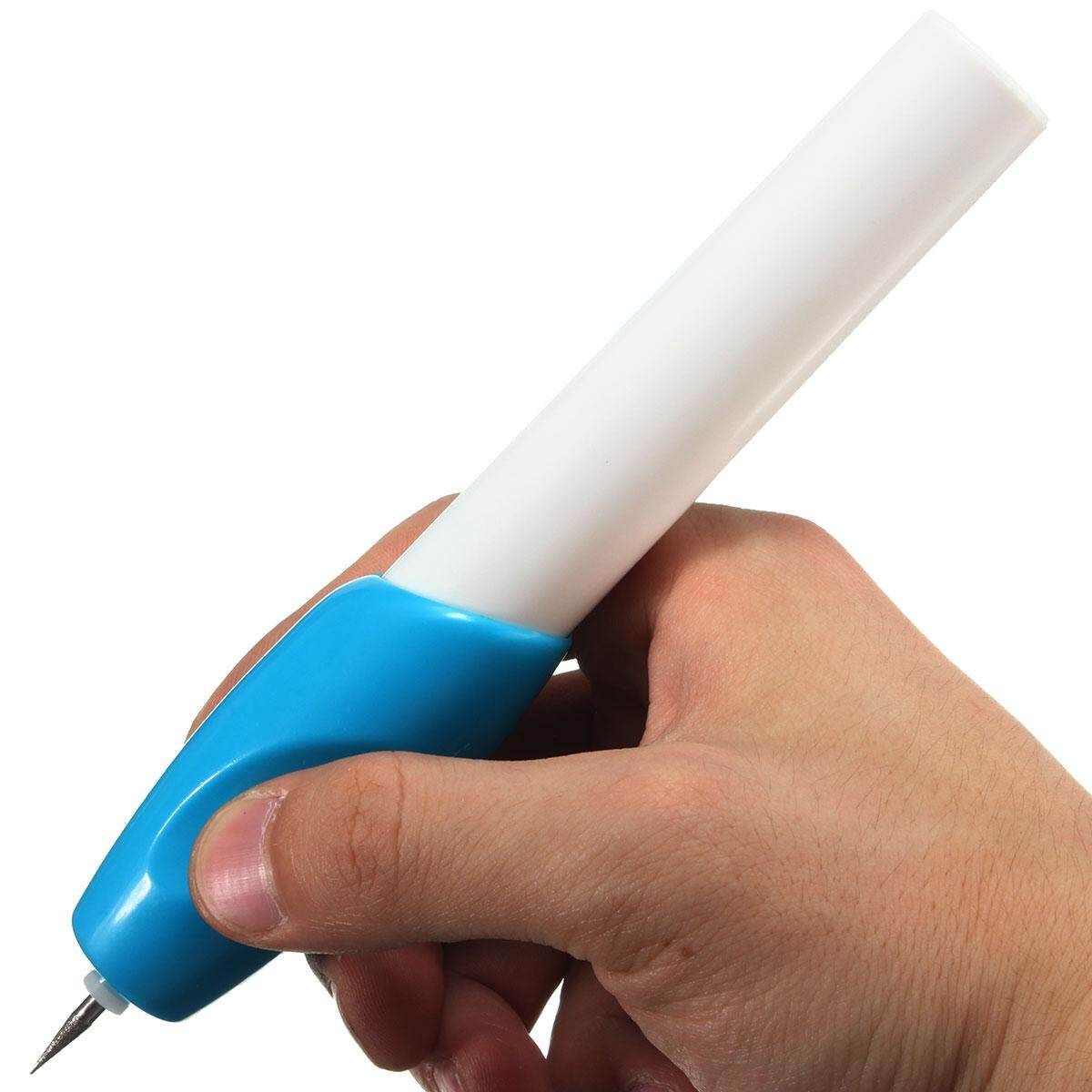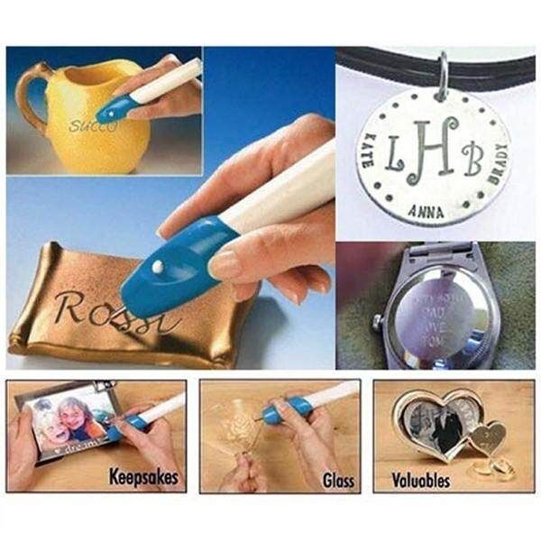 Hold the Engrave-lt like you would a pencil,with your thumb over the control button. Press the control button in with your thumb. Applying slight preesure,press tool down on surface to be engraved.Hold it at a slight angle(like you would a pencil).