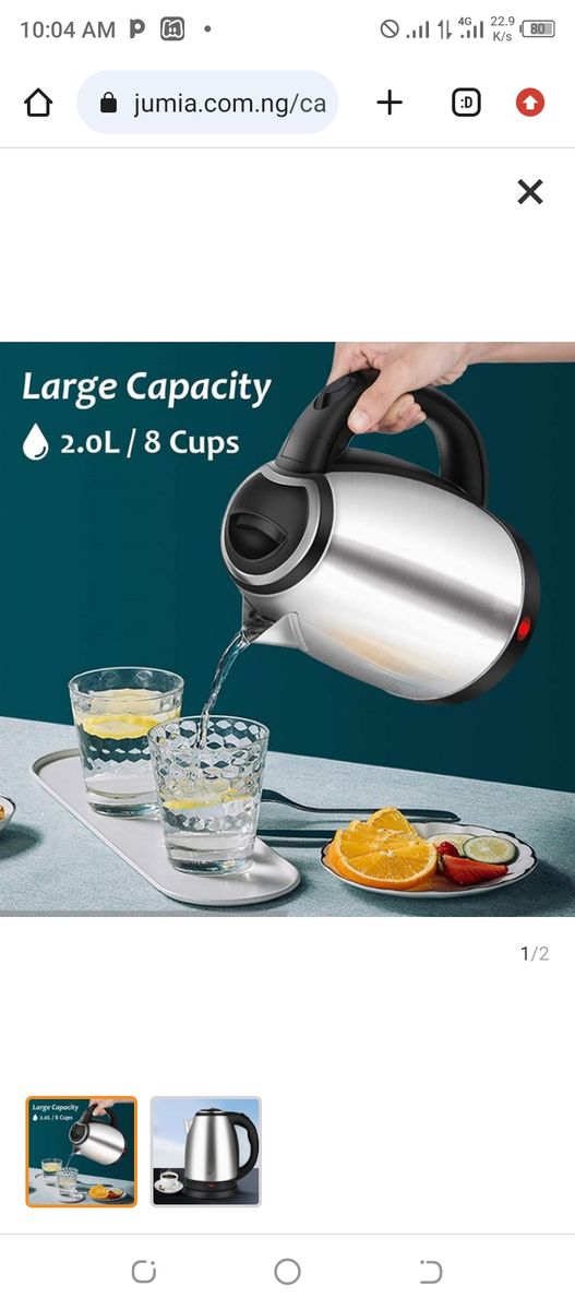 Electric jug kettle It comes with a flat heating element that gives you boiling water in seconds and it is easy to clean. The washable anti-calc filter gives you clear water, thus clearer drinks.comes with a lid knob that stays cool for a safe touch and Cord winder for easy storage:The cord can be wrapped around the base, so that the kettle is easy to place in your kitchen. Cordless 360° pirouette base for easy lifting and placing Multi safety system against short circuit. It has an auto switch mechanism that that turn it off when the boiled water ready or when the jug is lifted from the base. It has a hinged lid with large opening for easy filling and cleaning and protects user from steam contact. Conspicuous easy to read water level indicators on both sides of the electric kettle for left and right handed use.The kettle can be filled via the spout or by opening the lid. Flat heating element for fast boiling and easy cleaning light indicates when the kettle is switched on. Elegant light incorporated in the on/off switch indicates when the kettle is on.