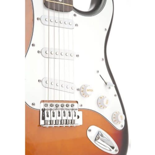 High quality 6 strings electric lead guitar. It comes with the bag, belt/Strap and Cord. Features :- 25.5" scale length double cutting away body One piece maple neck 24 fret rosewood finger board Three single coil pickups Tone controls Five position lever switch Waver bar It is the best choice for all guitar Whether you play for personal enjoyment & ndash; knowing that you & rsquo;re learning to play one of the most exciting of musical instruments, or for relaxation, or recreation, or are fired up with the inspiration to get a band together, get some gigs in pubs and clubs & hellip; whatever; everyone famous started just the same way!The tonewoods, hardware, pickups, comfort, balance, playability and tone set this guitars apart, giving them a credibility which will surprise even the most experienced player, and inspire the & lsquo;first time & rsquo; player to play, play now & ndash; and carry on playing! Blaster Series guitars feature specially created vintage-voiced pickups to produce astonishingly accurate and authentic tone.Hardware too is fundamental to tone and performance. This Series features custom-designed hardware and vibrato bridges which significantly enhance the superb tone and playability of these guitars.player both learners and professional players. Buy with confidence