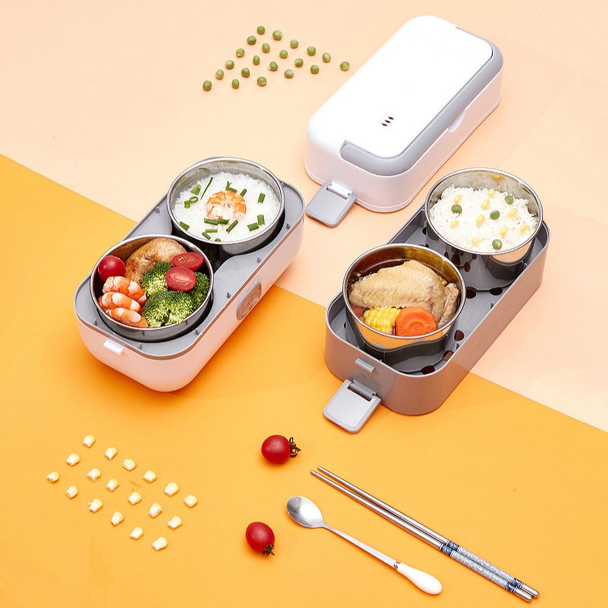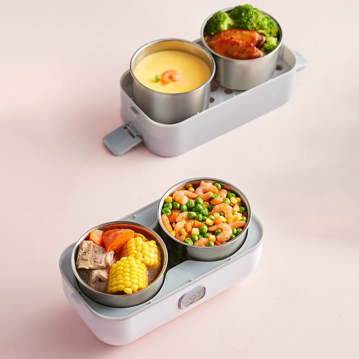 Portable heating lunch box enables you to heat meals in the office and school conveniently, circulating steam heating cooks rice and reheats the food.