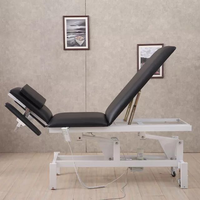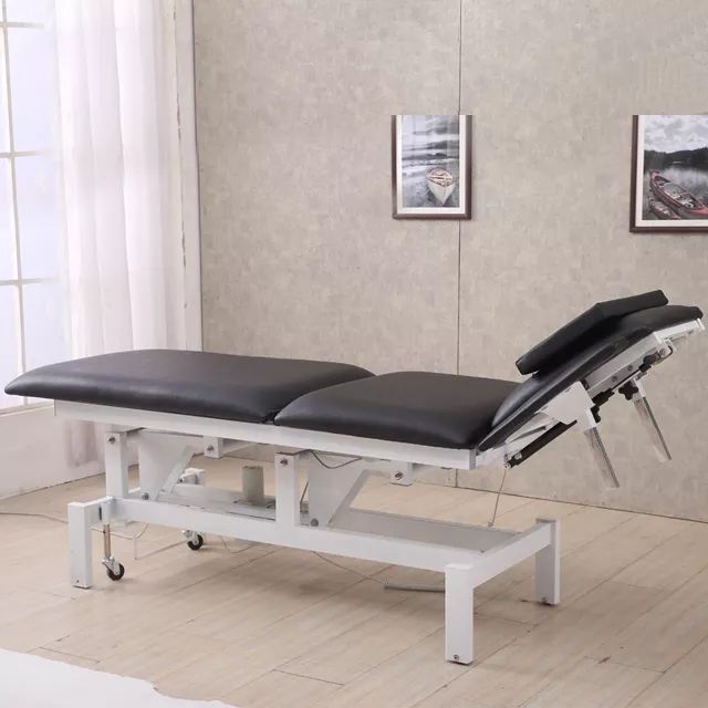 This sturdy electric massage table is made of high quality steal frame and a leather top. It has 2 motors for controlling height adjustment. The high PVC quality leather top covers a high density, machine made, sponge foam made by the machine. The bed design is based on more than 14 patents including utility model and outline design. The head section is adjustable to suit the user's position of comfort. The adjustment is made via a gas spring that can elevate or delevate the head section. Conversely, the foot section can also be adjusted to suit the user. This table is not only suitable for massage therapy. It is versatile and can be applied both in the medical and physiotherapy field.