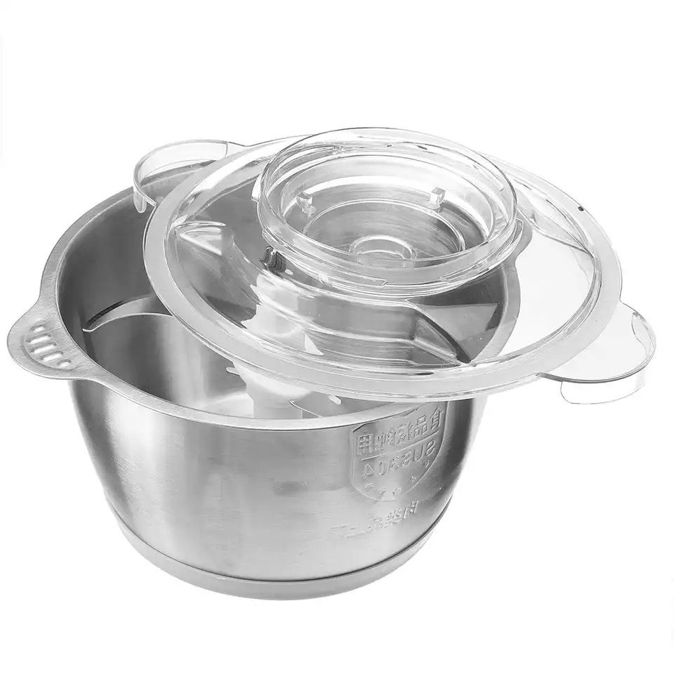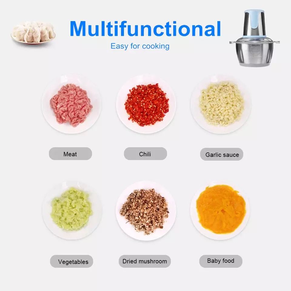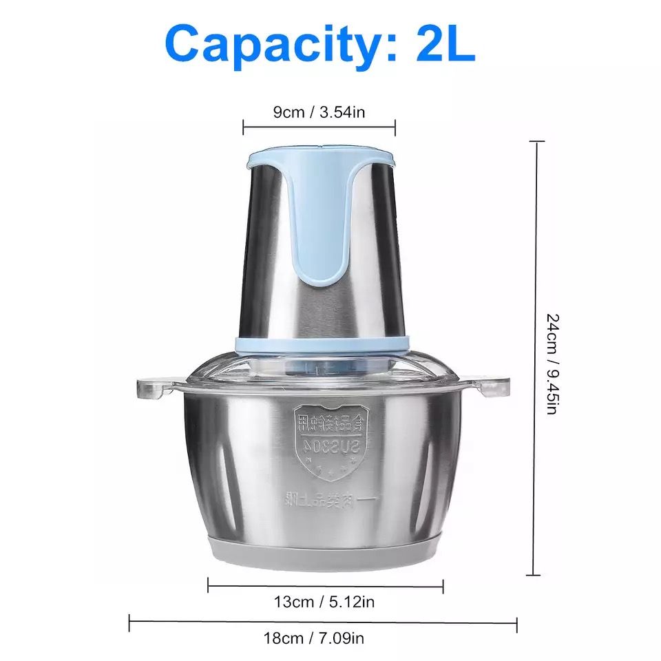 --2.0L Super Large Capacity Bowl:2.0L (8Cup) super large stainless steel bowl kitchen Food Processor Chopper can meet the crushing of a large amount of food at one time. it's stronger, healthier, shockproof, and ensures durability. Wear-resistant and anti-drop quality, it can be washed by hand or dishwasher, and can also be sterilized at high temperature.