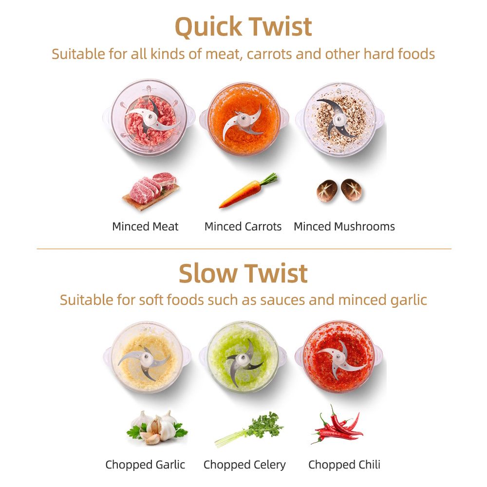5. This meat grinder is made of food grade material and is safe to use. You can use it to chop up all kinds of ingredients including Onions, meat, vegetables, fruit and ham, baby food, garlic, Onions, herbs and more. Ideal gifts for wives, mothers and friends.