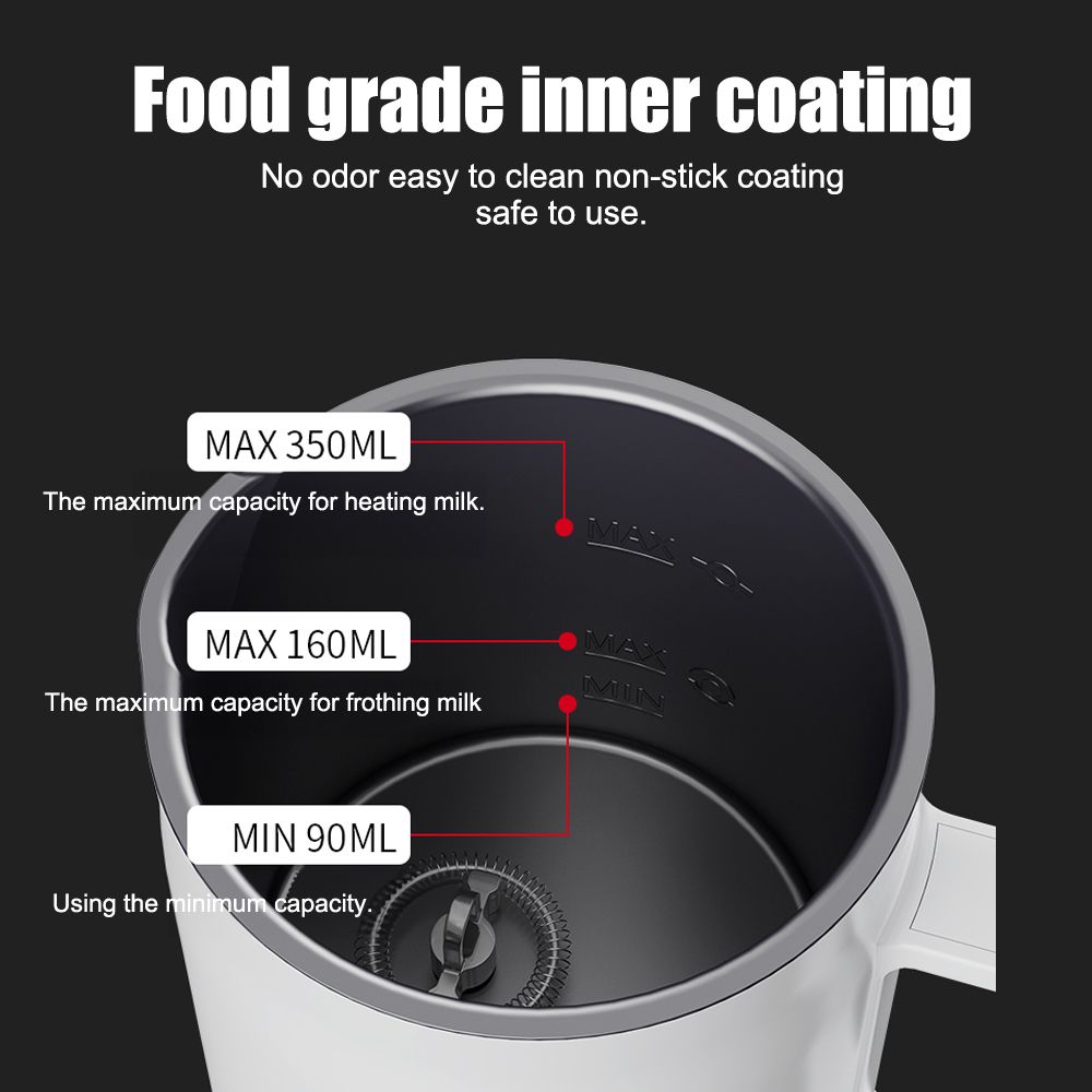 Large Capacity: Our milk frother and steamer is capable of heating up to 11.8oz/350ml of milk, making it ideal for a delightful breakfast. Additionally, it can froth up to 5.4oz/160ml. Whether you are at home or in the office, our milk frother is perfect for enjoying coffee with your loved ones.