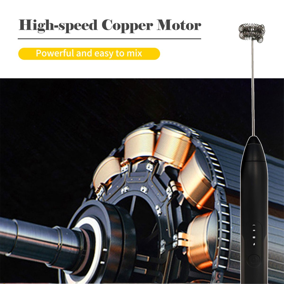 [Three Speed]Press the on/off switch in turn to tune the speed from low speed to high speed. Choose the different speeds to achieve the ideal frother effect.