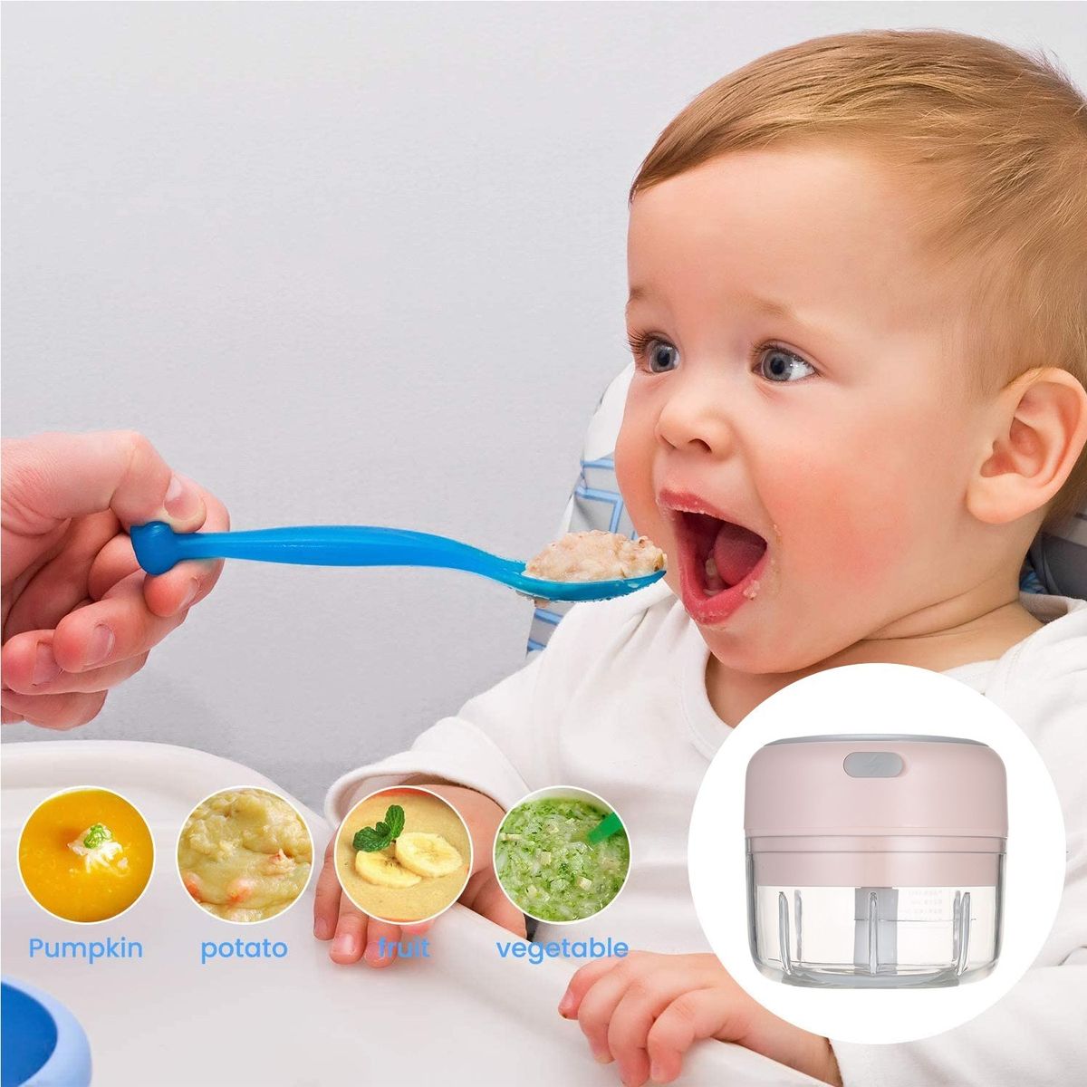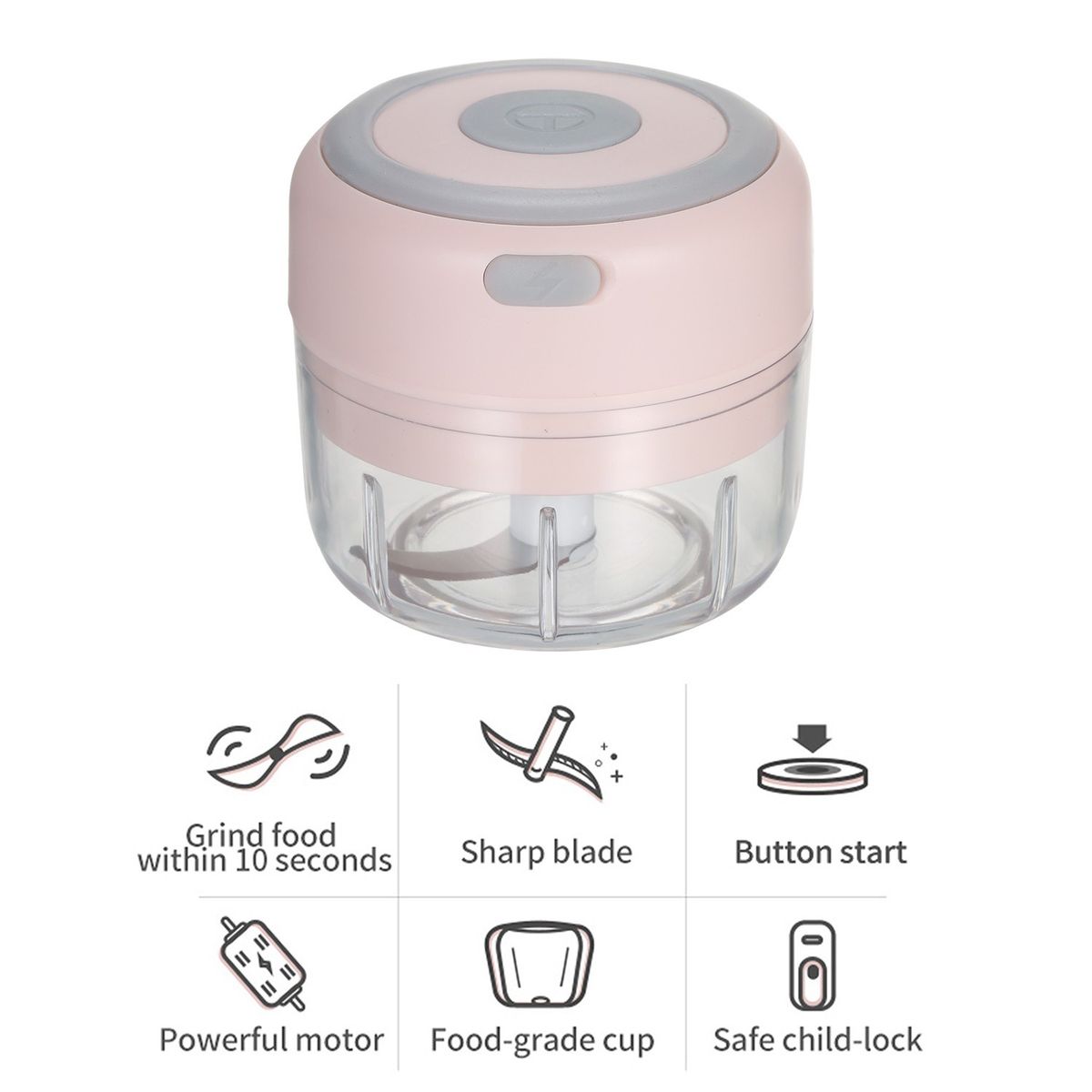 Effortless Food Blending -- This mini garlic grinder let you farewell to hand-pulling, no hands tired, no hands dirty and smell, only one button to start and stop, and cut evenly.