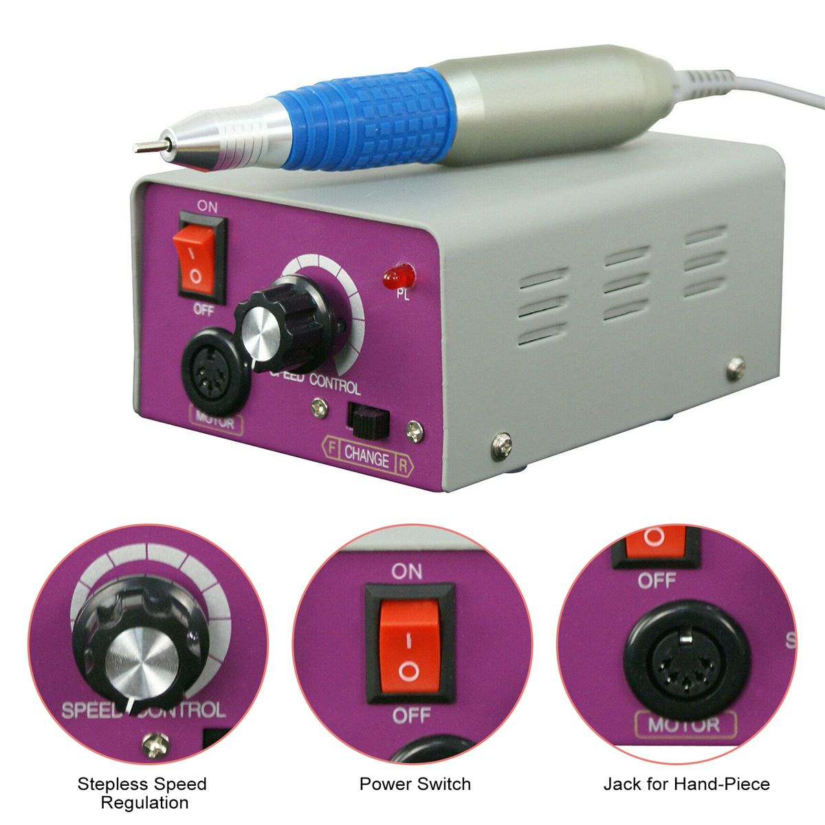 Adjuatable speed knob to adjust the speed 0-25000 RPM.