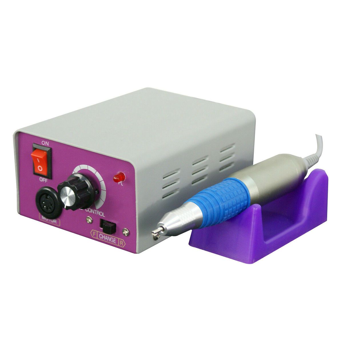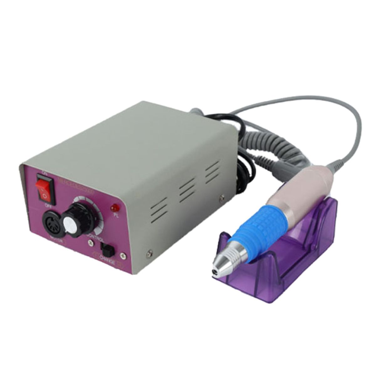 Purple cradle for holding the handpiece.