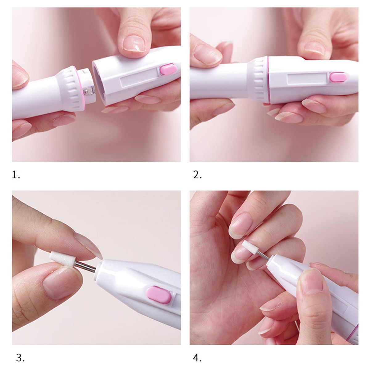 This electric nail file kit including 5 replaceable heads, each nail drill bit has different functions to remove excess cuticles, grinding, shape and shine nails