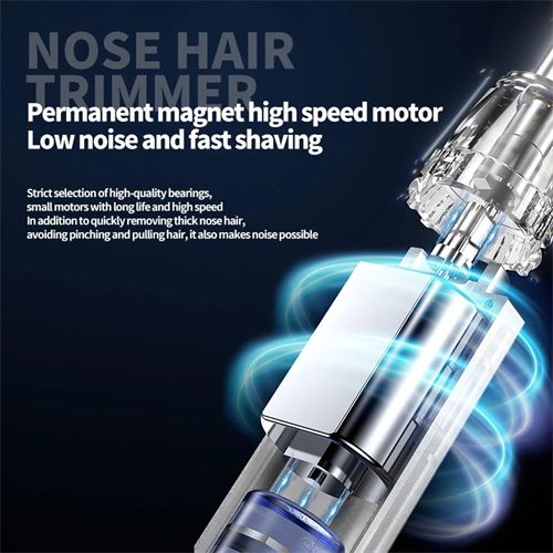 A fast permanent magnet high-speed motor can not only quickly shave off dense nasal hair, avoid pulling, but also reduce noise.