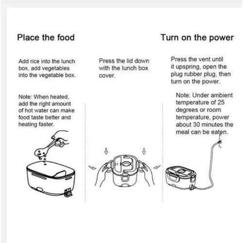 This portable food warmer comes with a handy spoon inside with a heat resistant carry handle making transportation to school or office easy. The heating lunch box features 2 heated compartments and a separate removable container allowing you to store and heat up a wide variety of food.