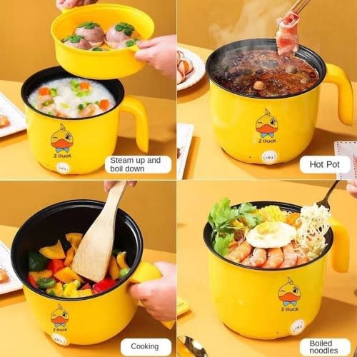 It has a capacity of 3.0 litres you can use it tocook different kinds of food and it is also a nonstick electric cooking pot which means that it prevent your food from sticking on the pot even when water drys while cooking. with 1000 watts of power.