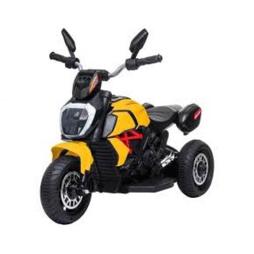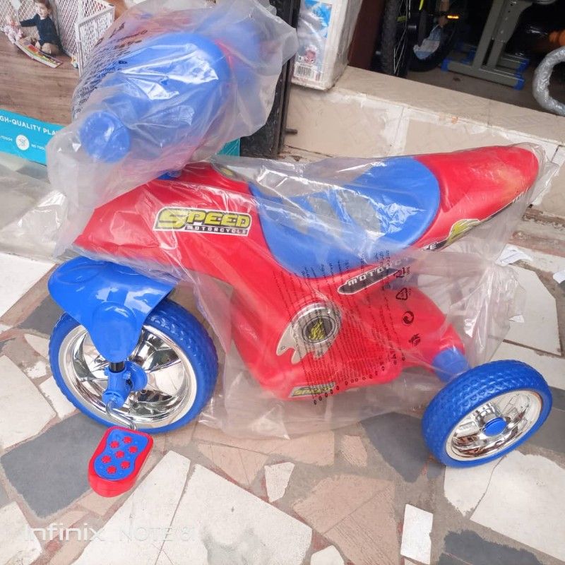 Provide an active child with hours of fun and physical play with this engaging this rechargeable Power Bike. It is constructed with Kid friendly materials and features easy push-button forward and reverse for added ease of use. This kids' ride on Power Tricycle will seat one child and is recommended for kids age 3-8years. Additional features include a handy acceleration foot pedal and two easy-grip handles. It is very easy to use as it features well balanced tyres. This Power Tricycle comes with a rechargeable battery with a charger and has colorful authentic colors. This Tricycle is quite durable and very affordable.