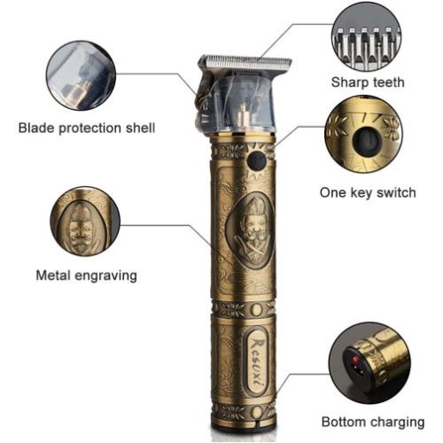 High precision Carbon steel blades Super sharp and low noise With battery capacity led display Using high tech permanent magnet motor.won't get hot for continuous use and long life Lithium Battery 2000mAh . Over change and over discharge protection, Accessories :4 guide combs (3,6,10,13mm),Adaptor cleaning brush.RECHARGEABLE HAIR CLIPPER
