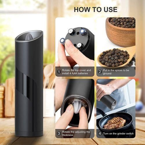 [Large Capacity & Durable] Each ceramic grinder requires 4 AAA sized batteries for operation. The biggest capacity of pepper grinder is 85ml, you can ground 65 grams spices with fully battery status. The maxium of grinder usage can be up to 1,000 times. (battery not included)