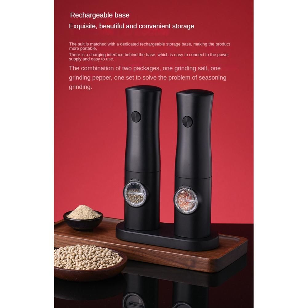 This electric salt and pepper grinder set has a built-in rechargeable 2 37V 500mAh Lithium Batteries multi-functional charging base which can be used for both charging and storage and unique contact design just p the pepper grinder on the charging base to charge it