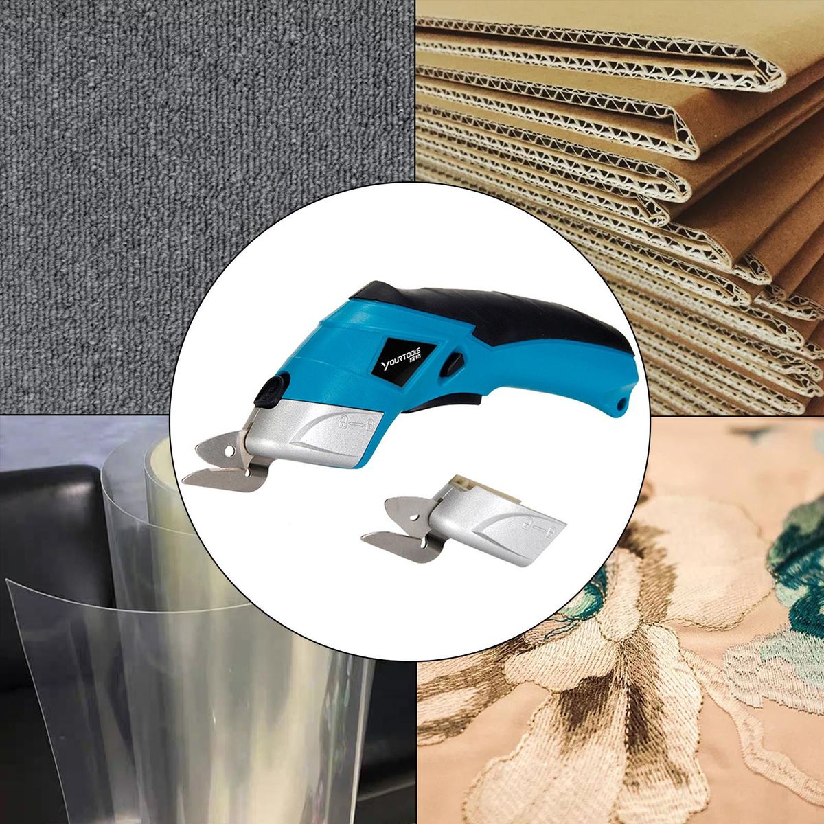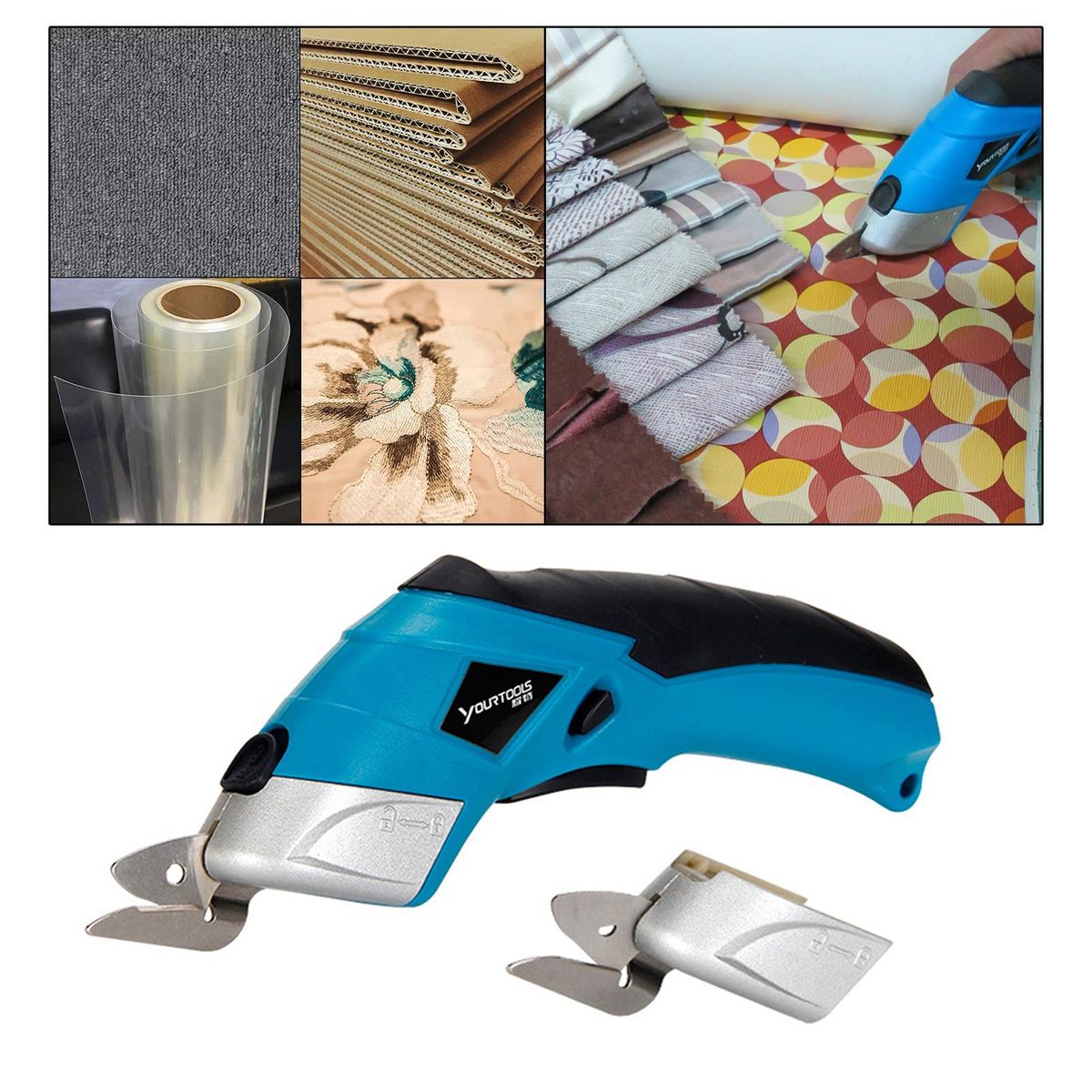 Electric scissors for cutting fabric, cardboard, cloth, leather, paper and even carpet and rubber easily and quickly to save you much working time.