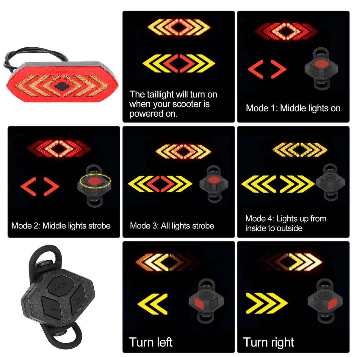 Wireless remote control with 3 buttons to send signals to the light: Middle light on, Middle light strobe, All lights strobe, Lights on from inside to outside, Turn left, Turn right.