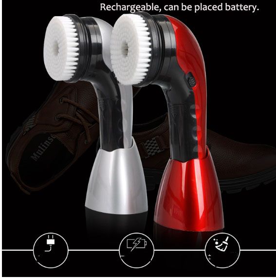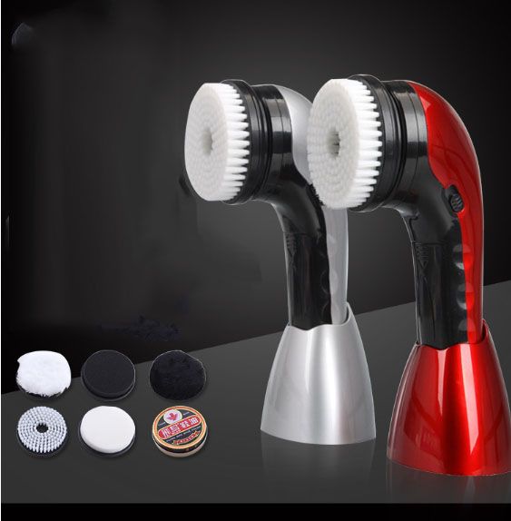 1X Electric Shoes Cleaning Machine Portable Rechargeable Dedusting Oiling Waxing Polisher 5 Brush Heads One-Touch Switch