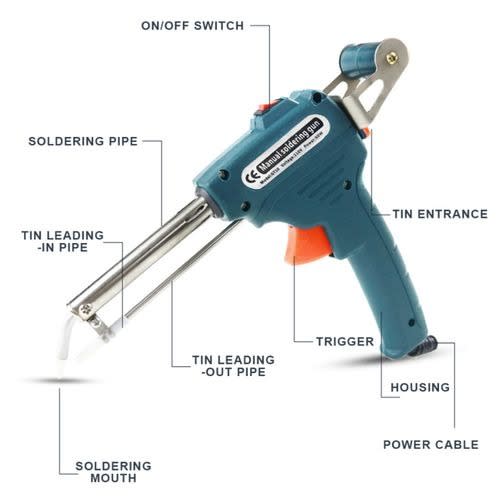 The plunger type has a cylinder with a spring-loaded piston which is pushed down and locks into place. When triggered by pressing a button, the piston springs up, creating suction that sucks the solder off the soldered connection. The plunger type is what we have displayed here for sell .