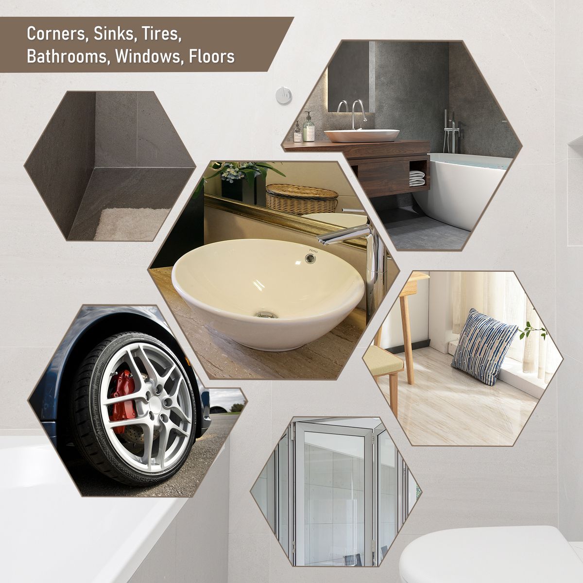 Wide Application for bathroom, bath tub,floor,toilet,car wheel hub,carpets,kitchen,water sink,window,corners and etc.